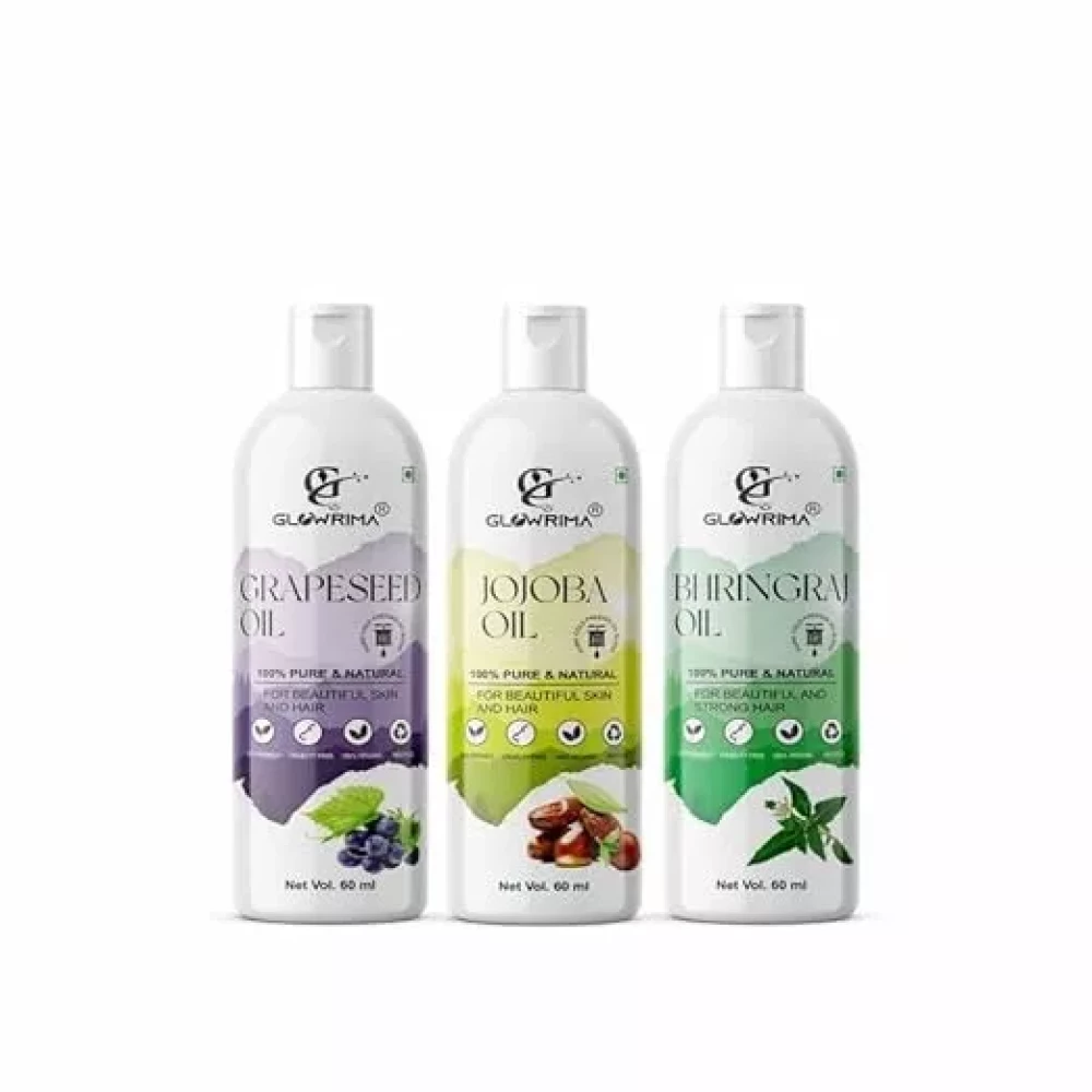 Glowrima 100% Pure Grapeseed Oil and Jojoba Oil and Bhringraj Oil 60ML Pack Of 3