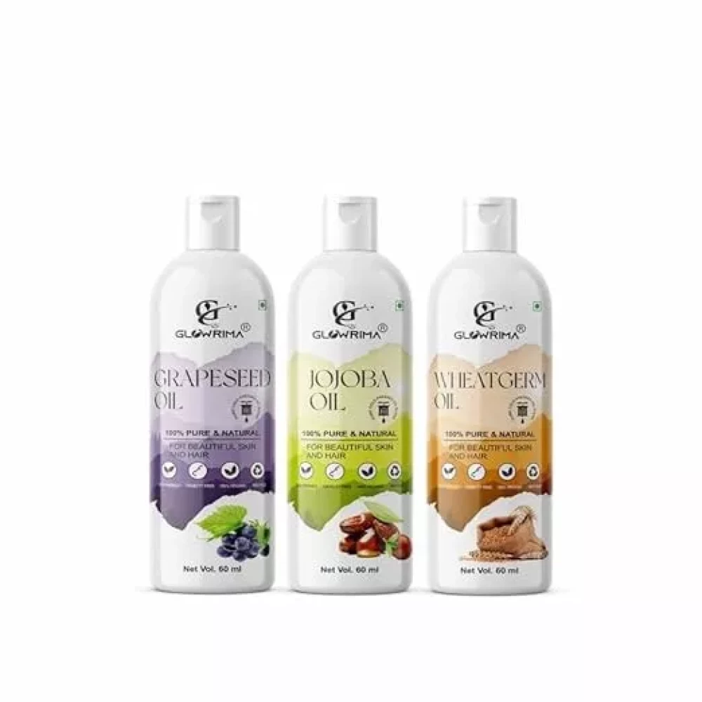 Glowrima 100% Pure Grapeseed Oil and Jojoba Oil and Wheat Germ Oil 60ML Pack Of 3
