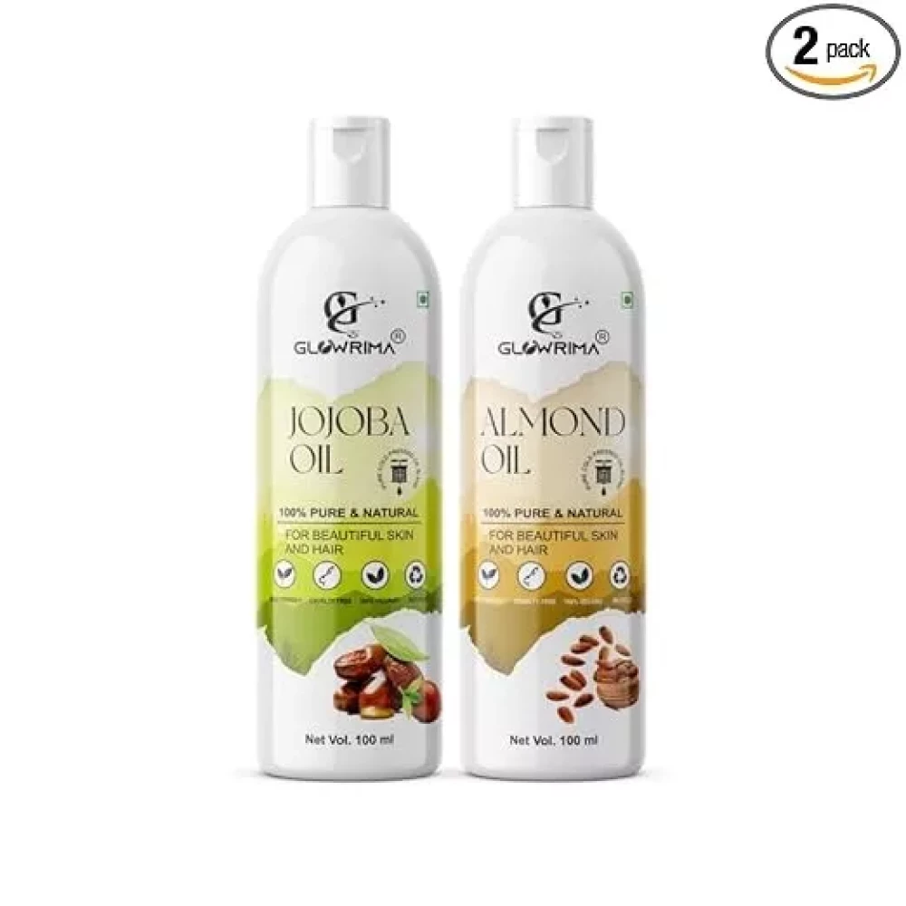 Glowrima 100% Pure Jojoba Oil 100ML and Almond Oil 100ML Combo For Rapid Hair Growth Pack Of 2