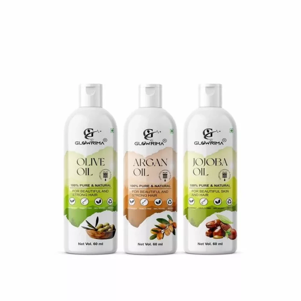 Glowrima 100% Pure Olive Oil and Argan Oil and Jojoba Oil 60ML Combo Pack Of 3