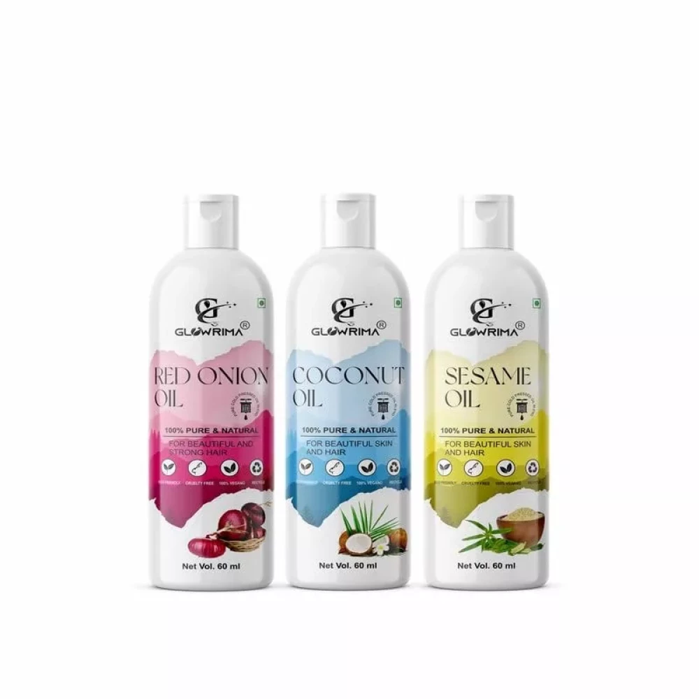 Glowrima 100% Pure Red Onion Oil and Coconut Oil and Sesame Oil 60ML Combo Pack Of 3