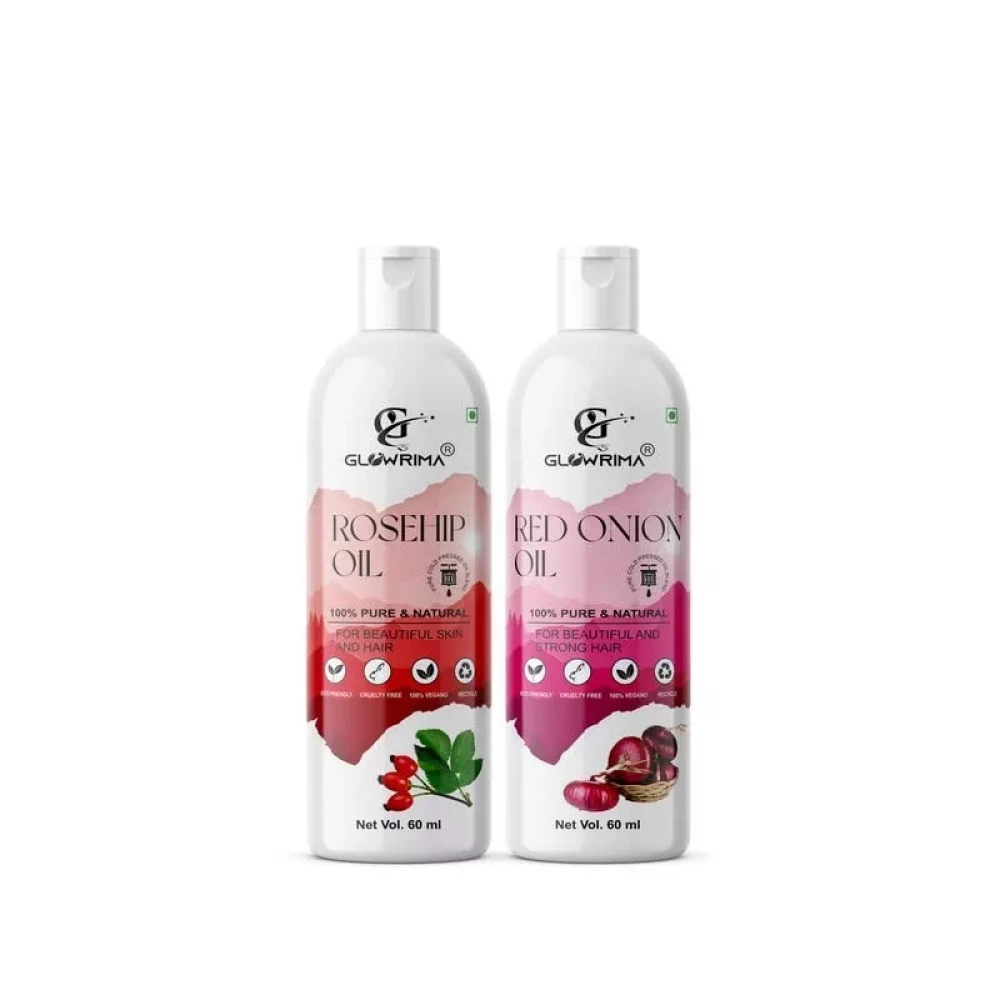 Glowrima 100% Pure Rosehip Oil 60ML and Red Onion Oil 60ML Combo For Hair Growth