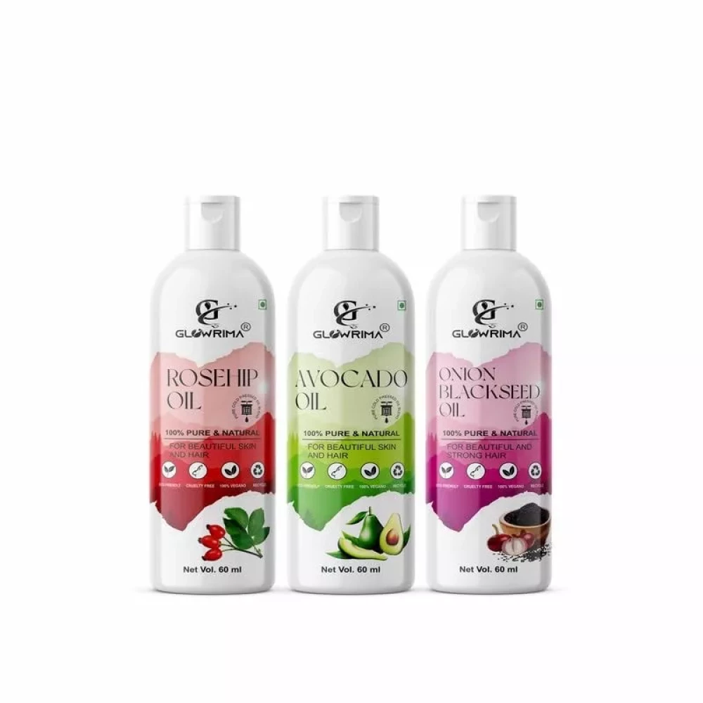 Glowrima 100% Pure Rosehip Oil and Avocado Oil and Onionblackseed Oil 60ML Combo Pack Of 3