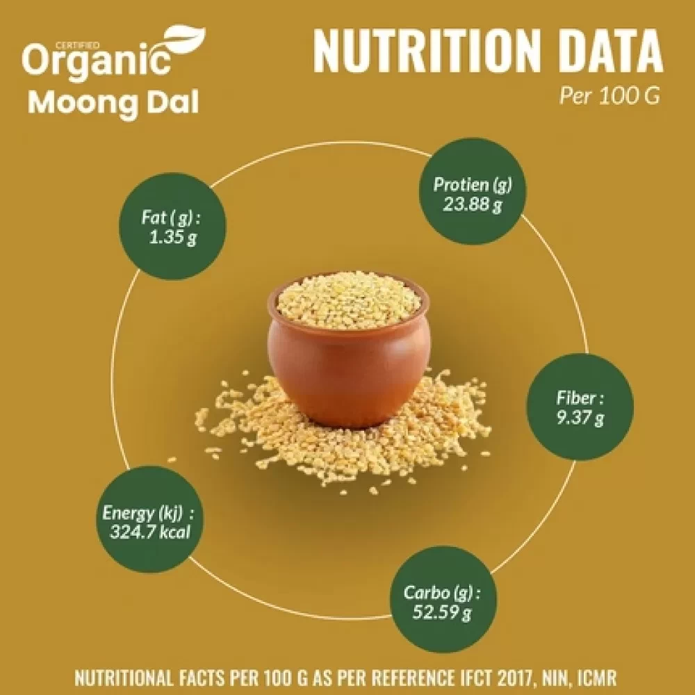 • Moong Dal is rich in Protein & a 100 g serving of cooked moong dal contains about 6 g protein besides it also has vitamin E, C, and K