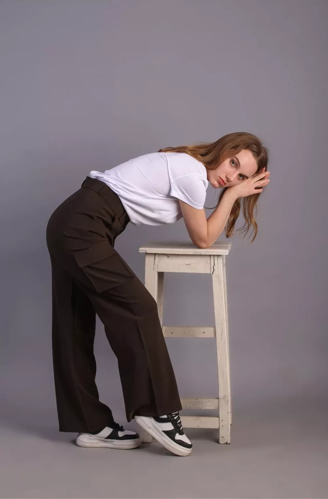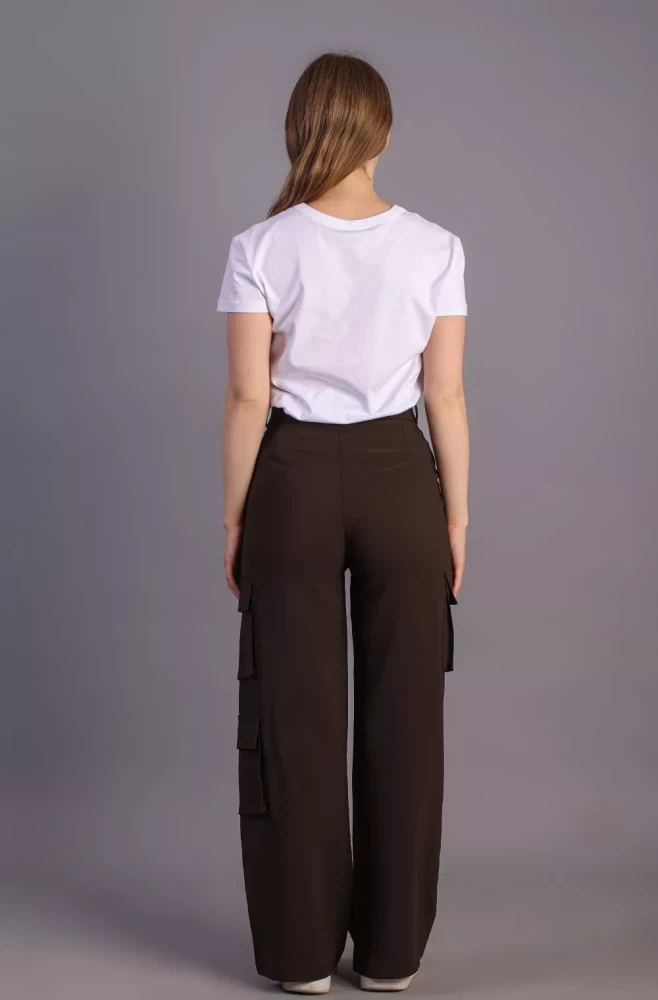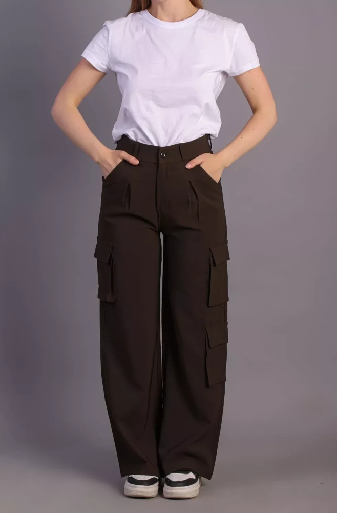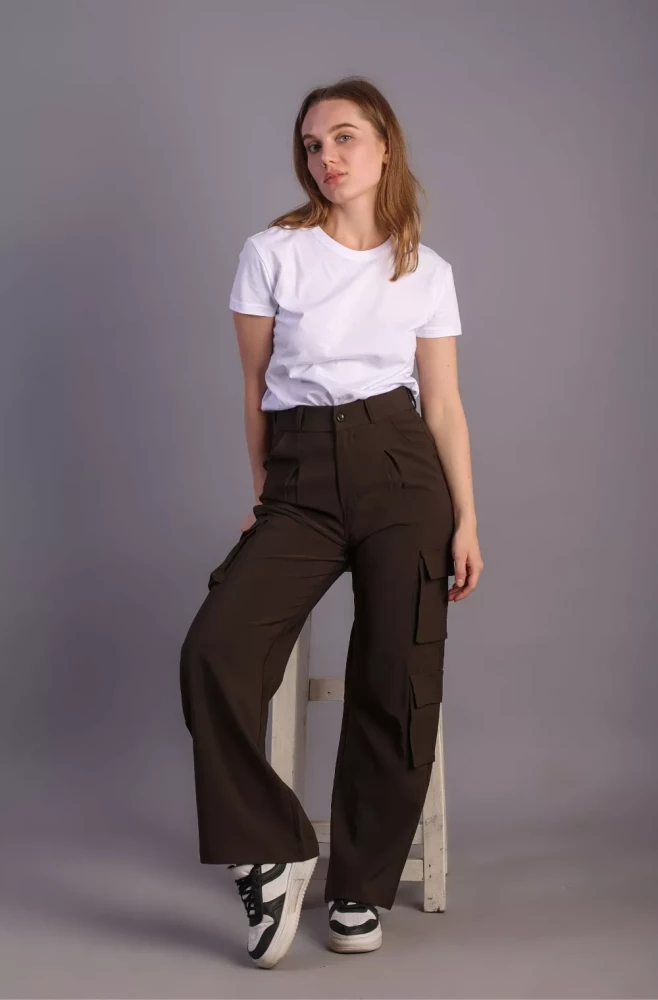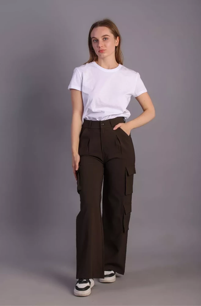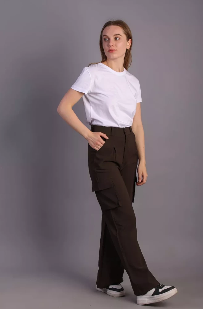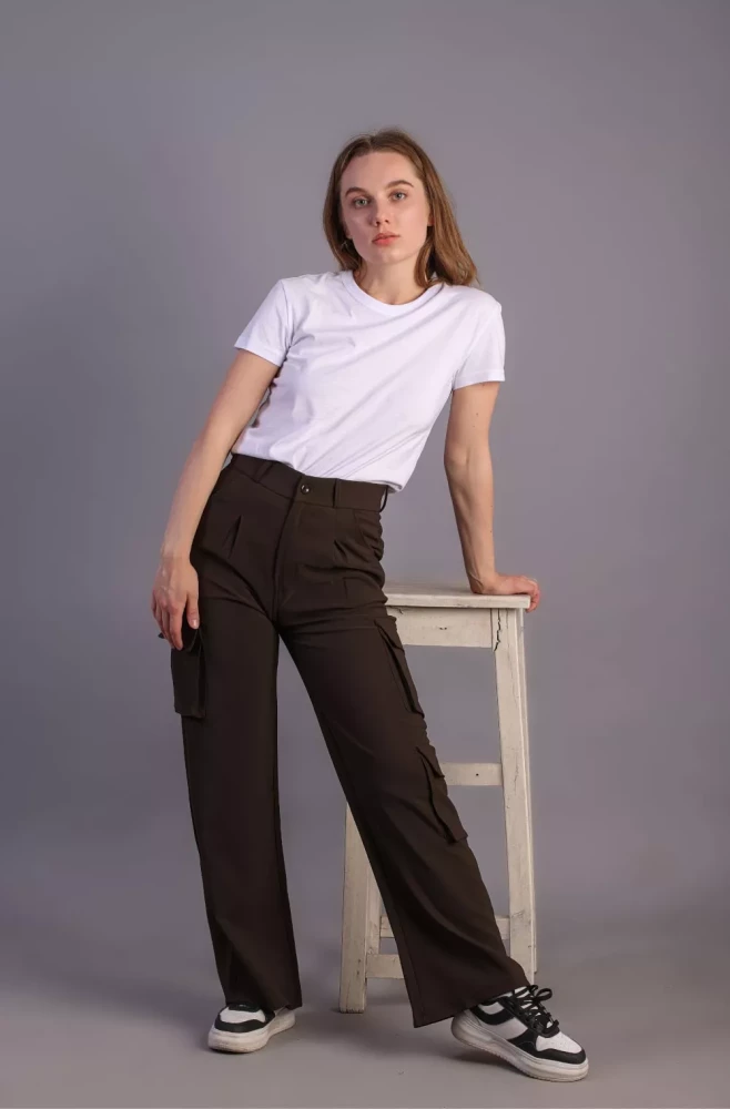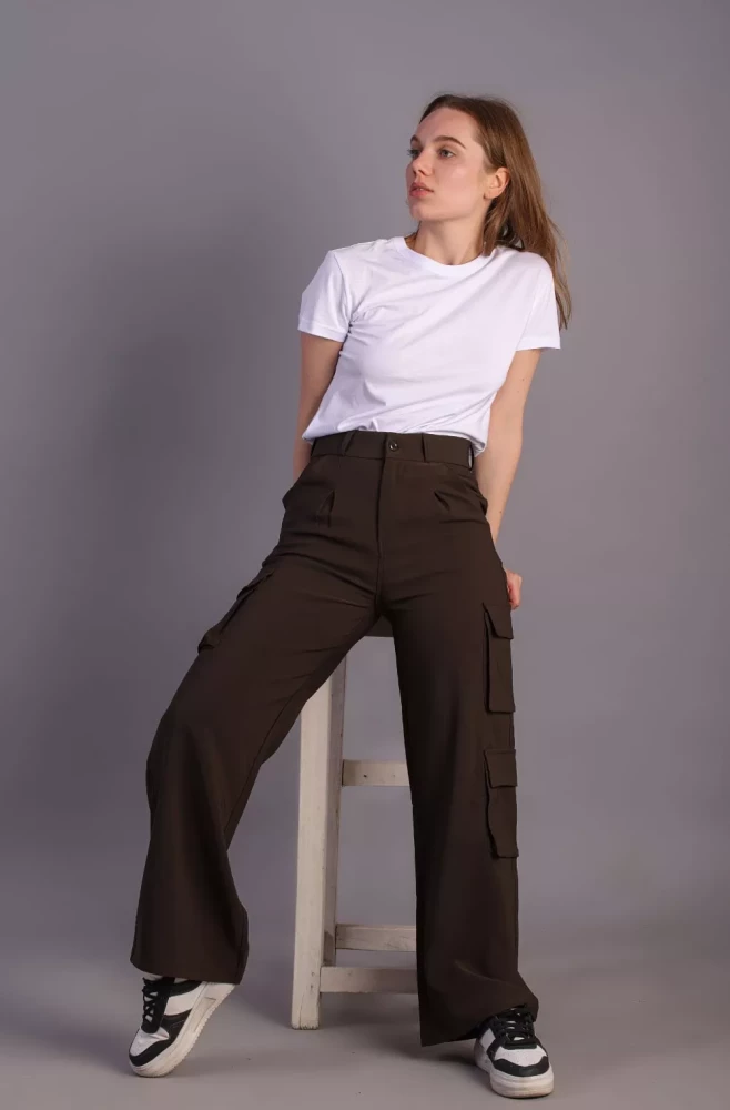 Pair them with a casual tee and sneakers for a laid-back weekend look, or dress them up with a blouse and heels for a more polished ensemble. Elevate your wardrobe with our Women's Army Brown Korean 5-Pocket Cargo Pants and experience effortless style and functionality.