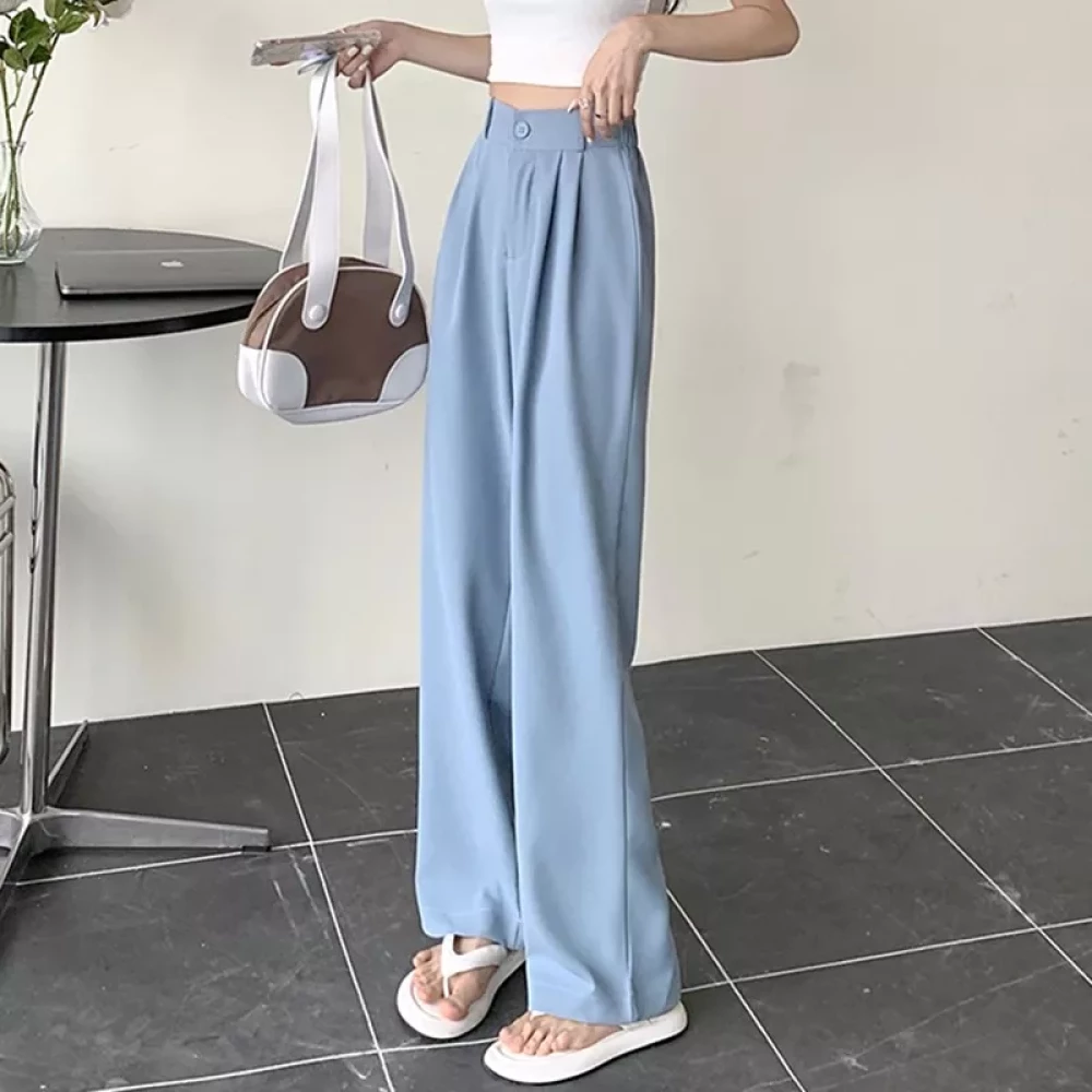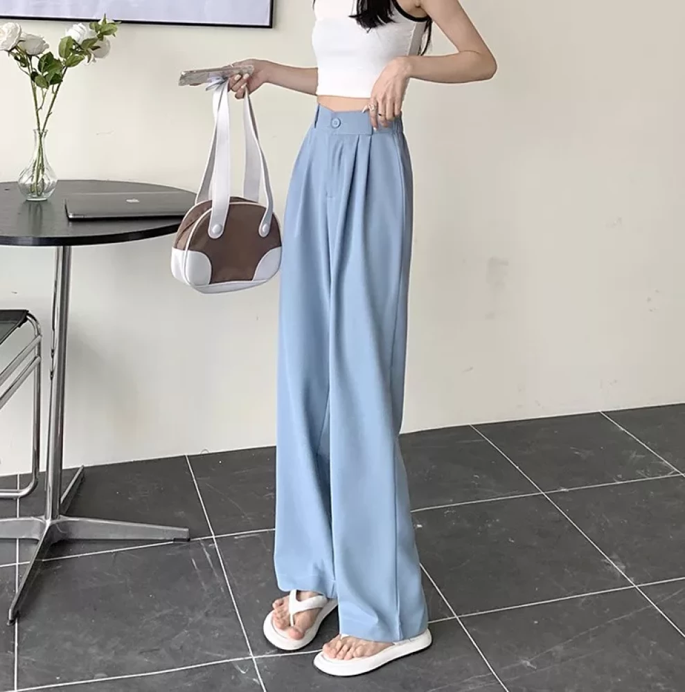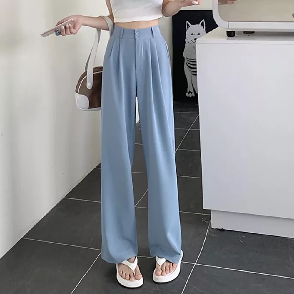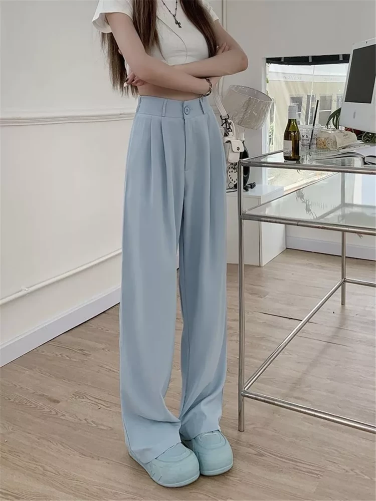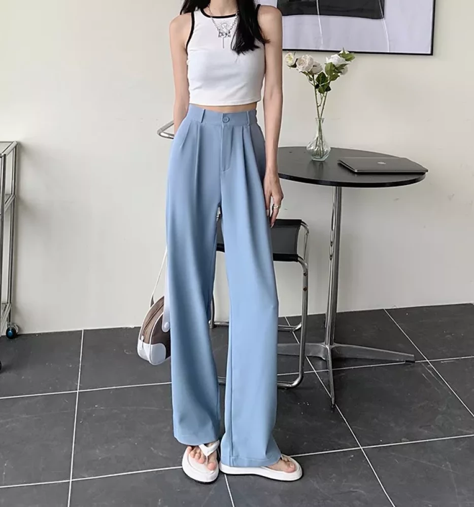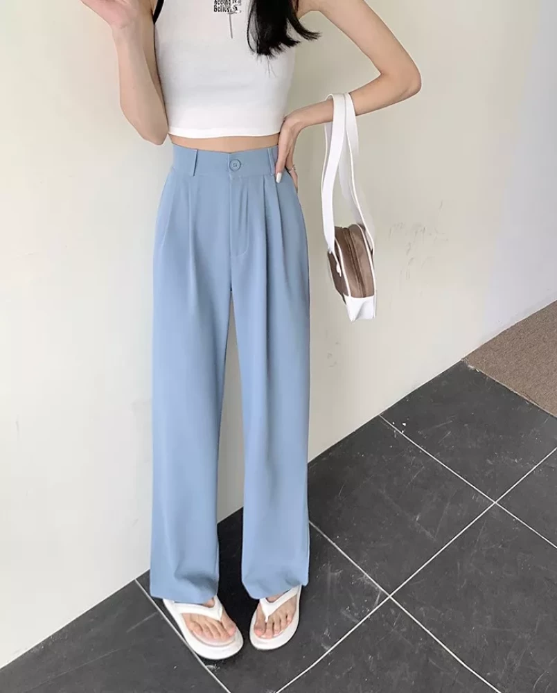 Women Back to office korean Light blue pants trouser
