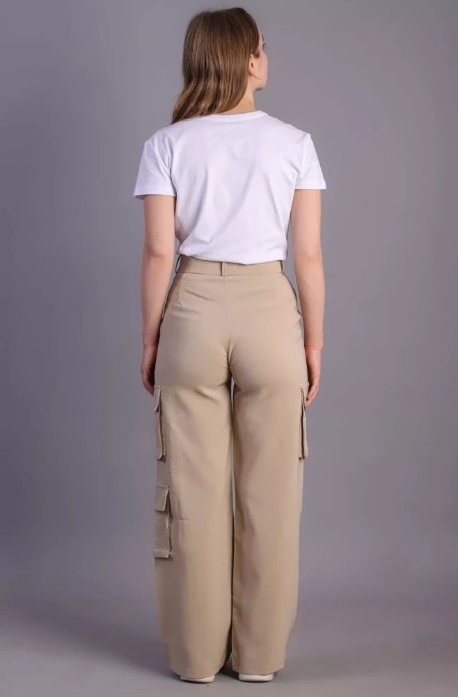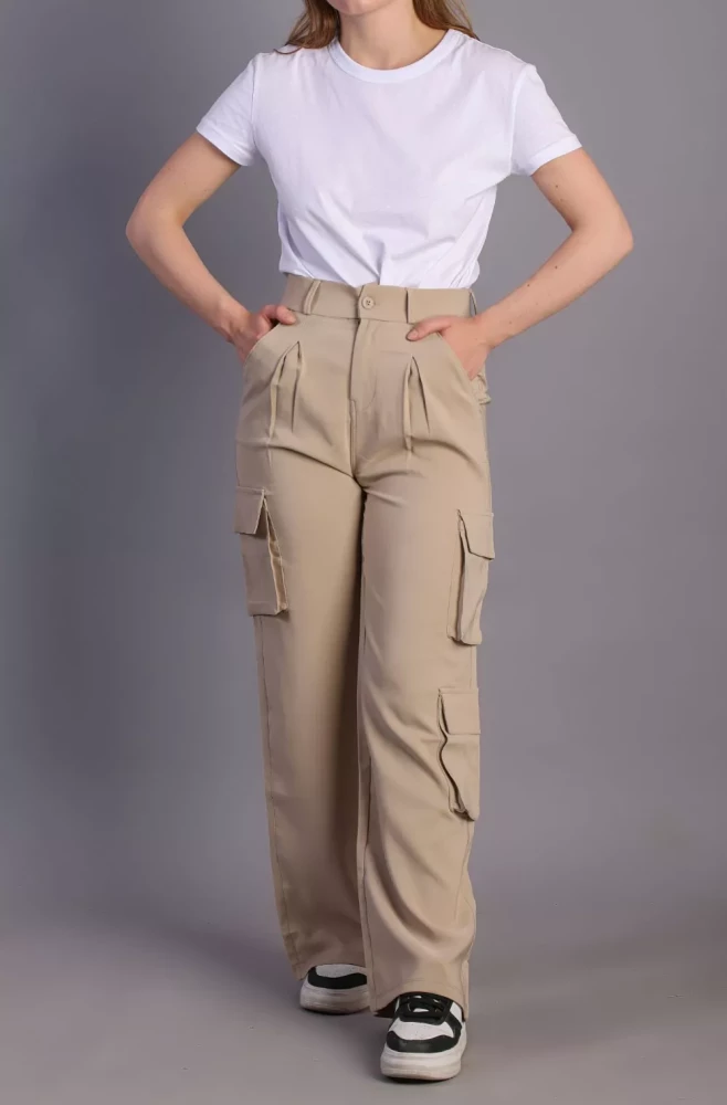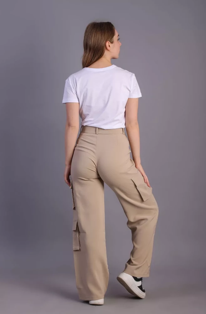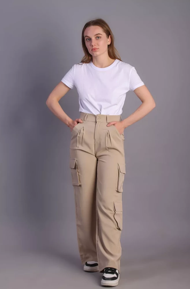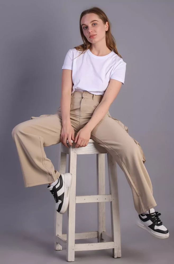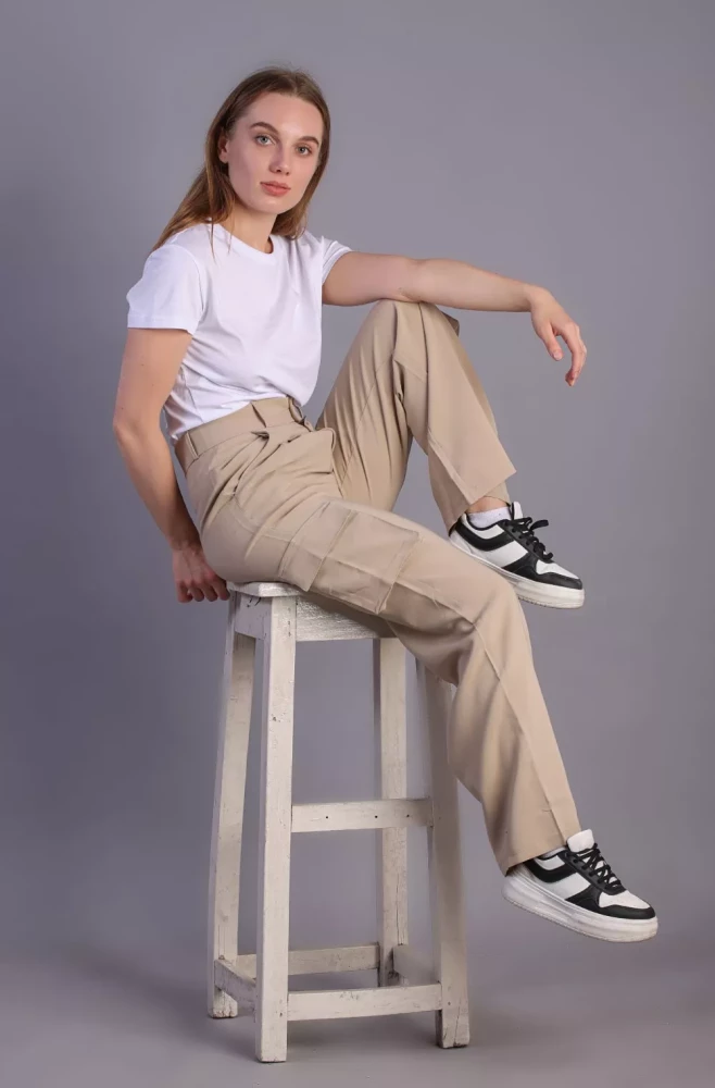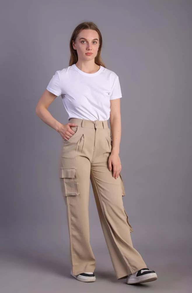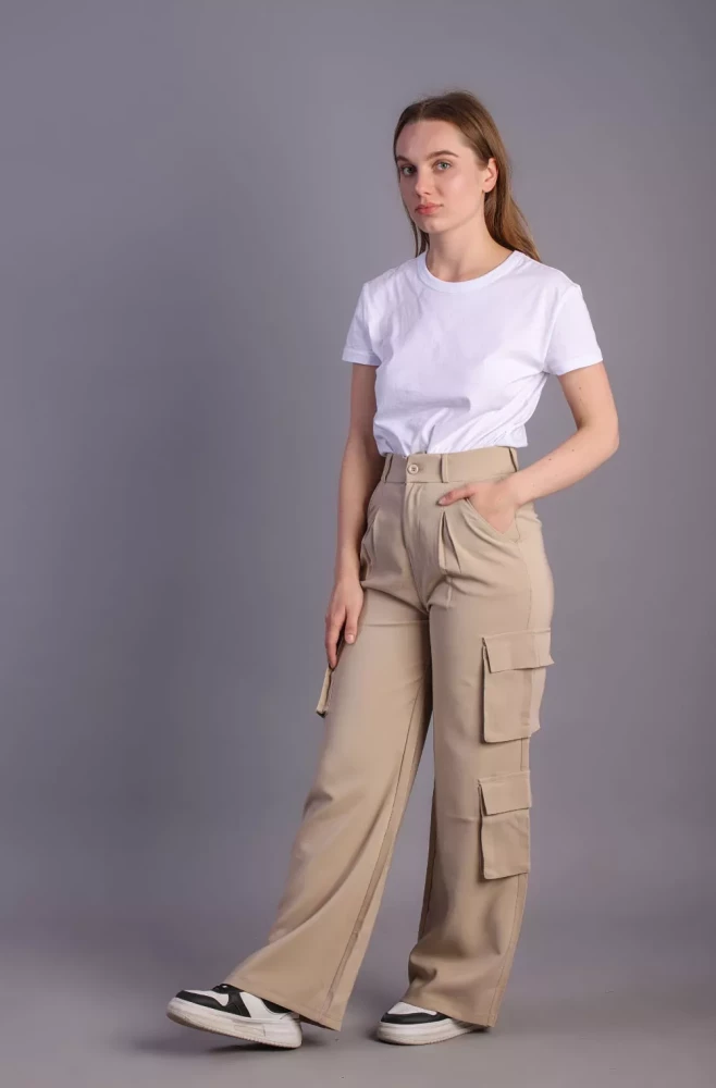 Pair them with a casual tee and sneakers for a laid-back weekend look, or dress them up with a blouse and heels for a more polished ensemble. Elevate your wardrobe with our Women's Beige Korean 5-Pocket Cargo Pants and experience effortless style and functionality.