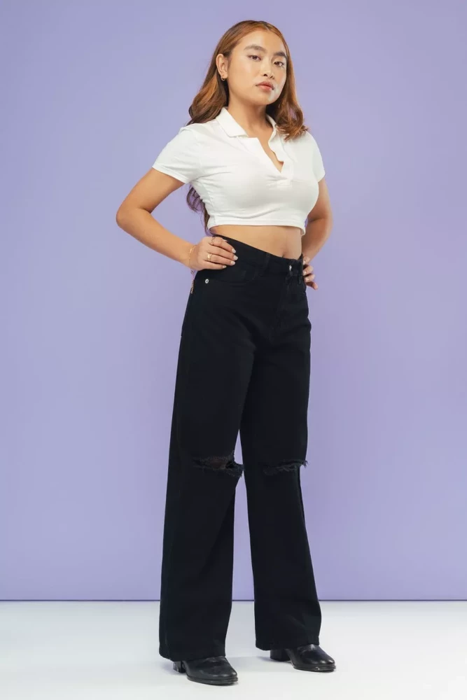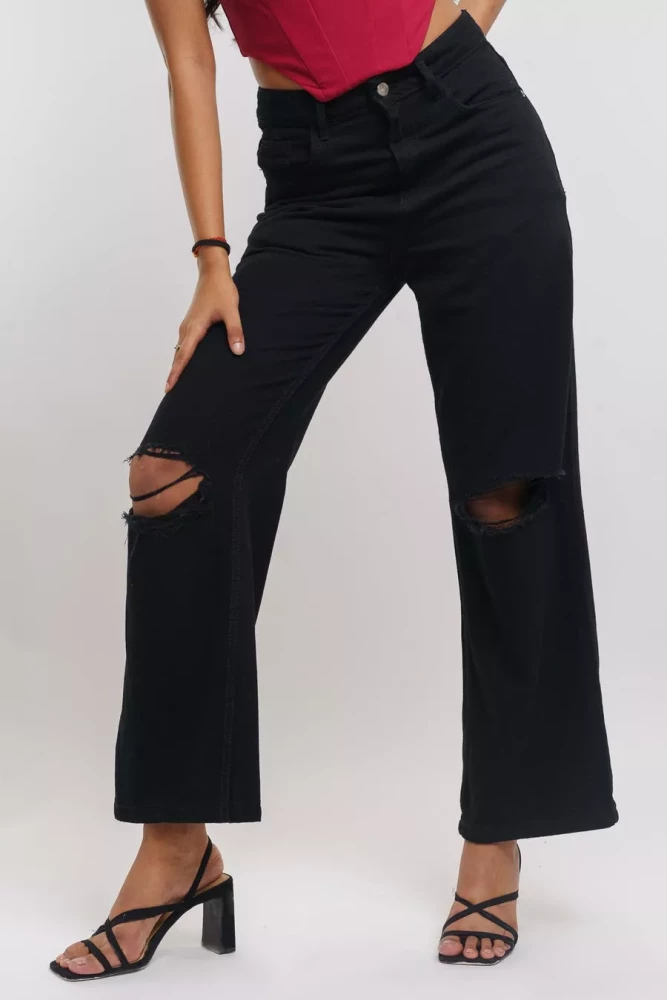 Step into style and comfort with our Black both knee cut jeans for Women, tailored to fit the lifestyle of the modern, dynamic woman. These high-waist, wide-leg denim pants are not just another pair of jeans; they are a fashion statement backed by comfort and practicality. Each pair is carefully crafted from a premium denim and cotton blend that offers breathability and durability, perfect for daily wear.