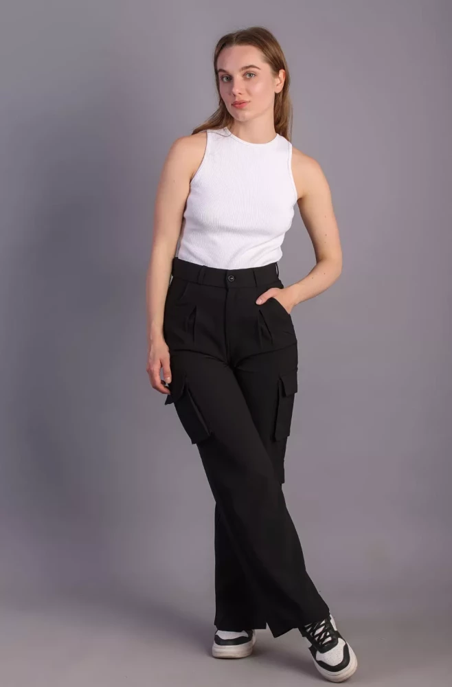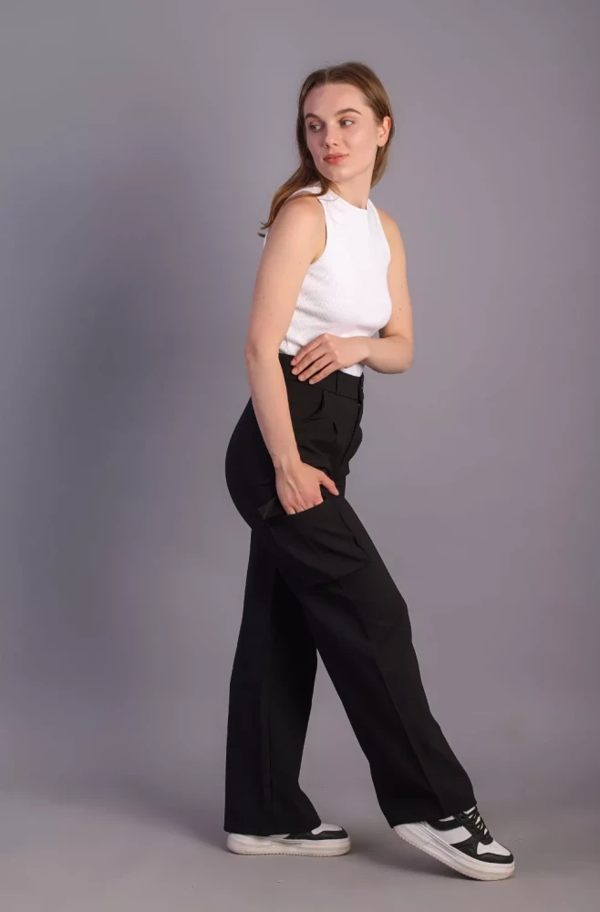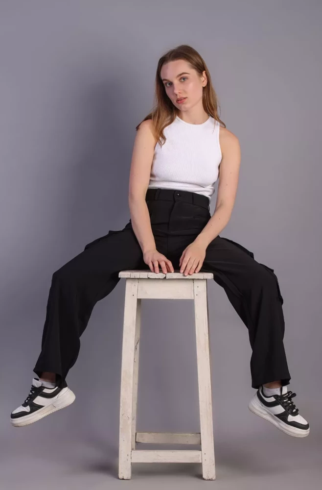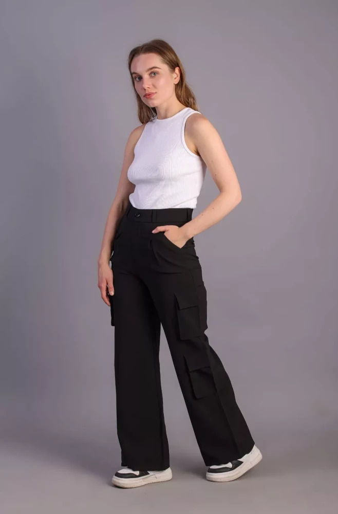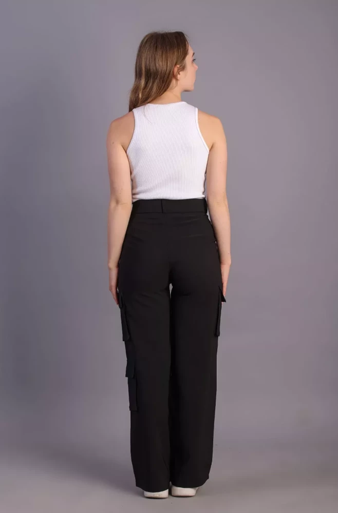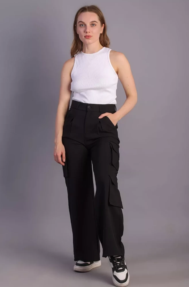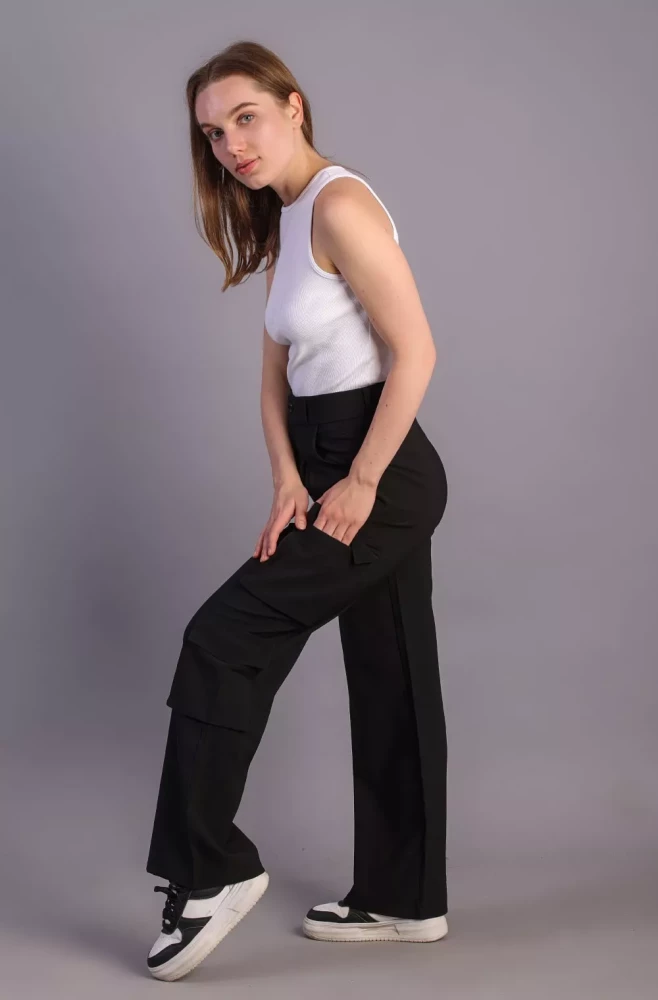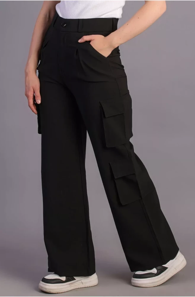 Pair them with a casual tee and sneakers for a laid-back weekend look, or dress them up with a blouse and heels for a more polished ensemble. Elevate your wardrobe with our Women's Black Korean 5-Pocket Cargo Pants and experience effortless style and functionality.