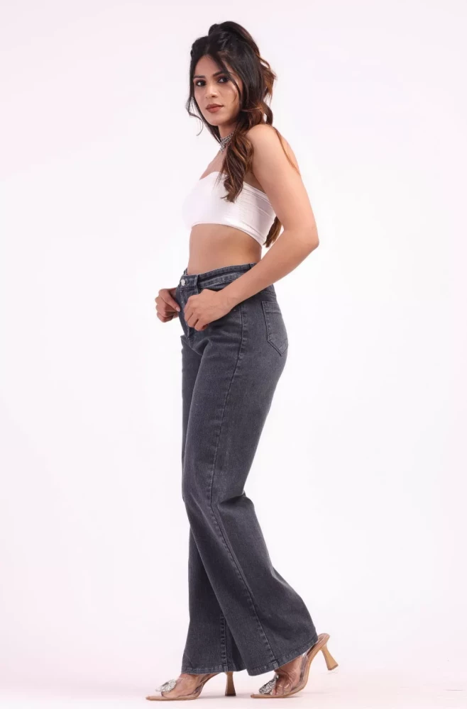 Women Charcoal Grey Wide leg jeans