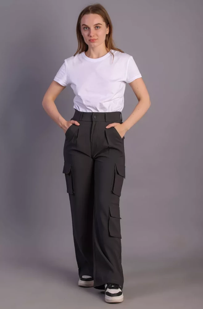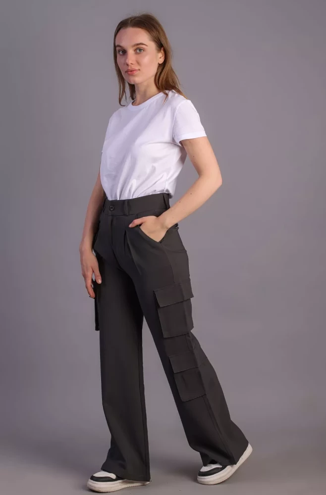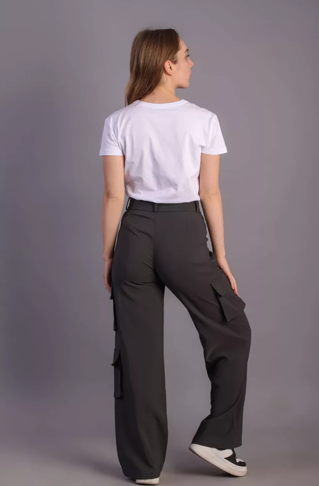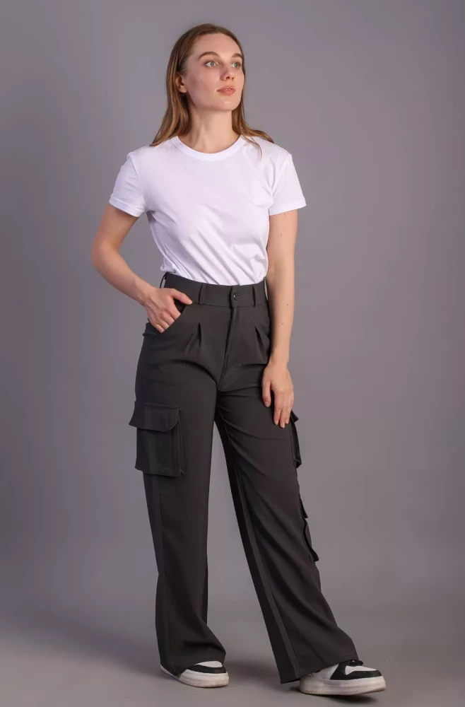 Pair them with a casual tee and sneakers for a laid-back weekend look, or dress them up with a blouse and heels for a more polished ensemble. Elevate your wardrobe with our Women's Dark Grey Korean 5-Pocket Cargo Pants and experience effortless style and functionality.