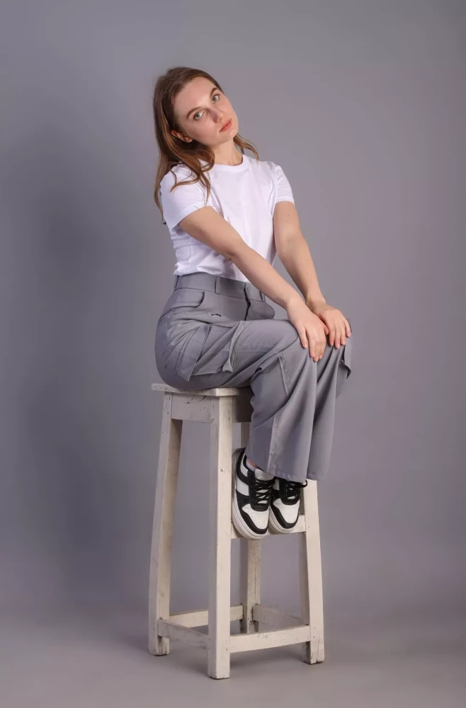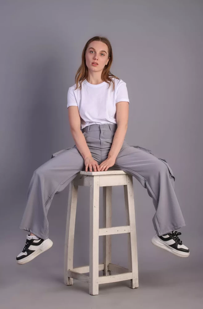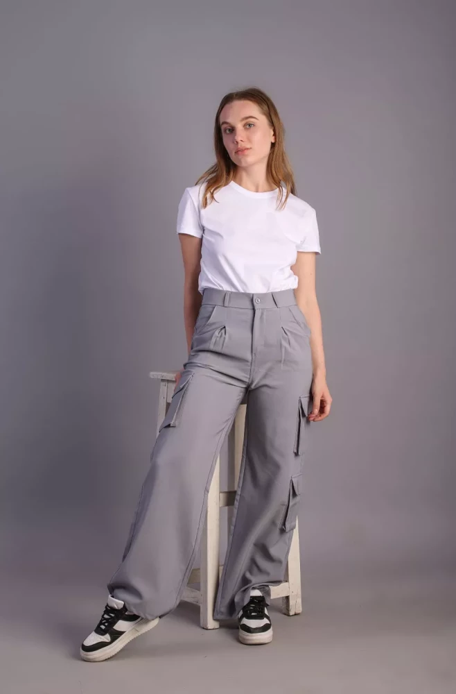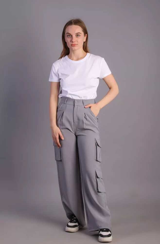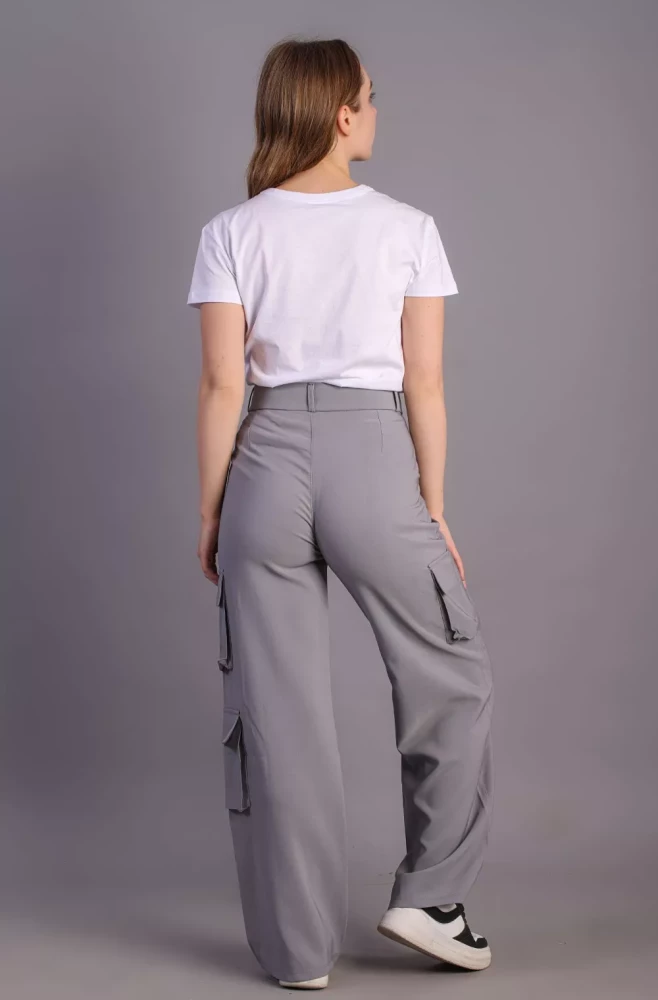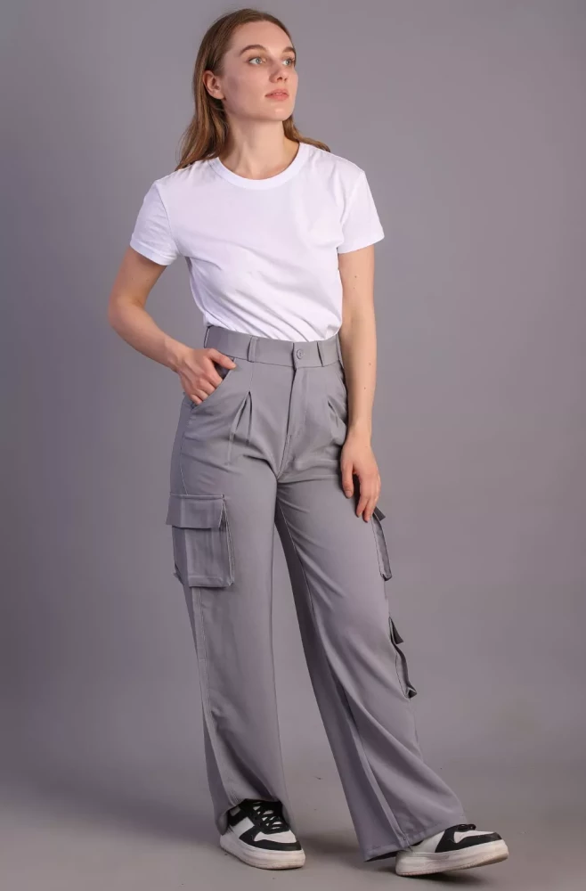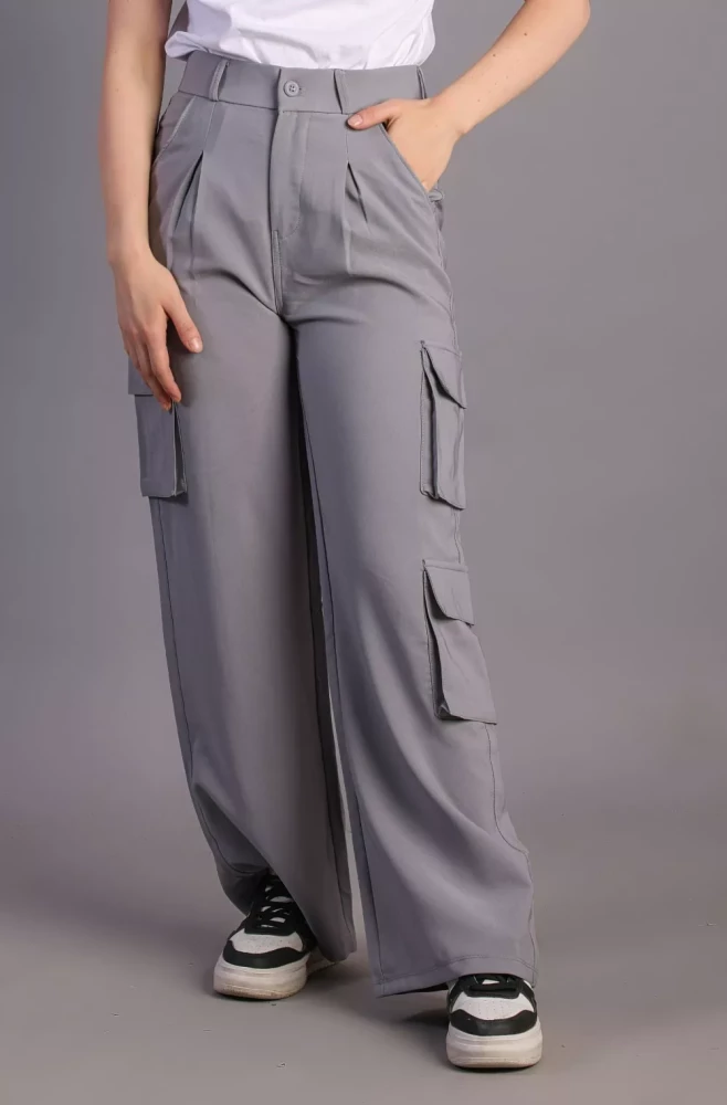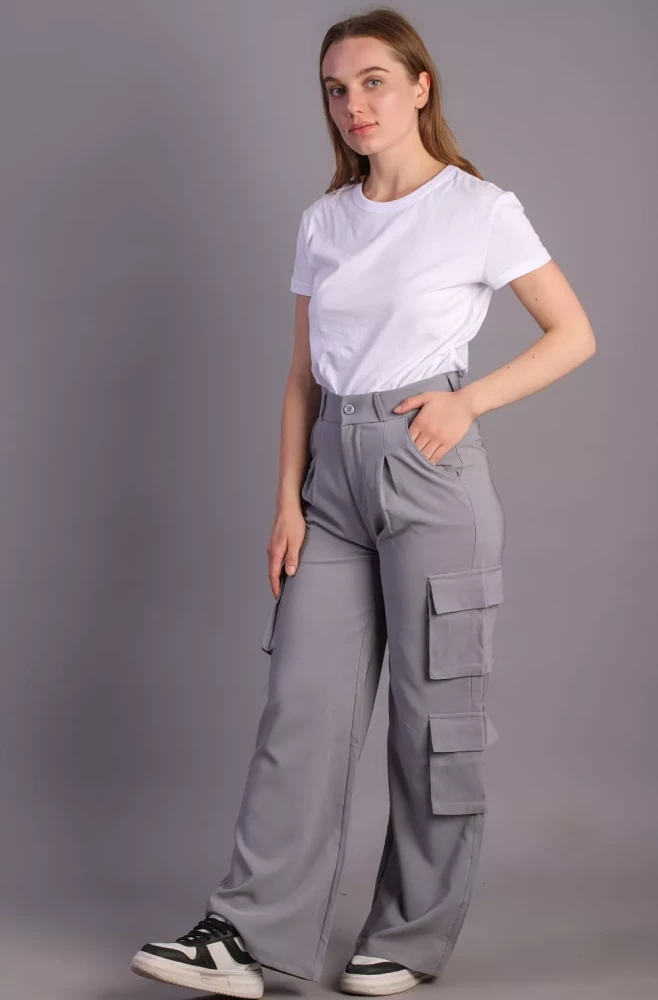 Pair them with a casual tee and sneakers for a laid-back weekend look, or dress them up with a blouse and heels for a more polished ensemble. Elevate your wardrobe with our Women's grey Korean 5-Pocket Cargo Pants and experience effortless style and functionality.