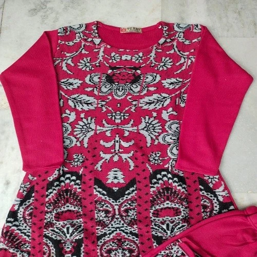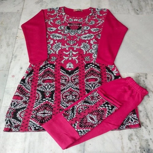 Affordable Women's Woolen Jaquard Frock Legging Set Pink