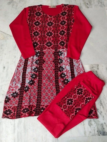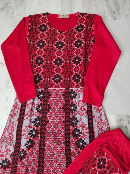 Affordable Womens Woolen Jaquard Frock Legging Set Red