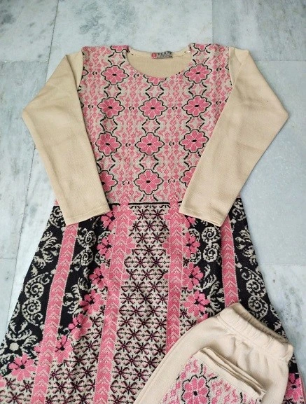 This affordable and stylish women's jaquard woolen frock leggings set is perfect for staying warm and looking your best this winter. The frock is made from high-quality jaquard wool that is soft, warm, and luxurious. The leggings are also made from wool, and they are stretchy and comfortable. This set is perfect for layering, and it can be dressed up or down for any occasion.