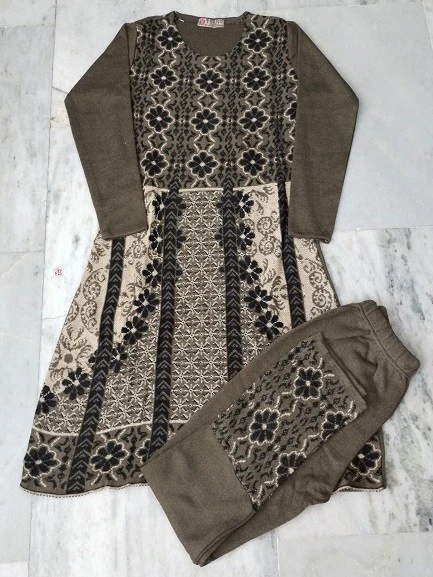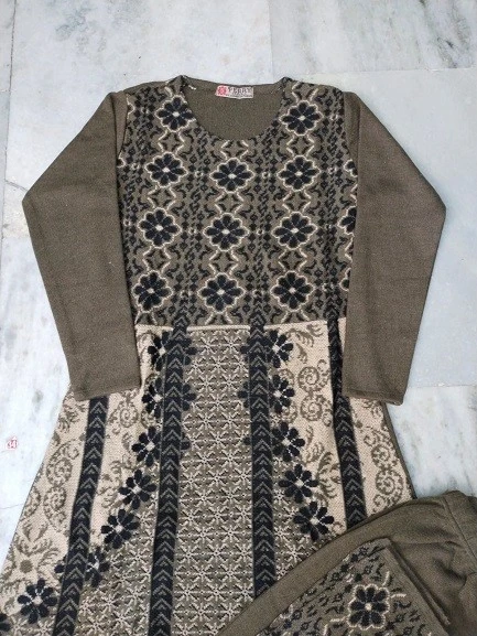 This affordable and stylish women's jaquard woolen frock leggings set is perfect for staying warm and looking your best this winter. The frock is made from high-quality jaquard wool that is soft, warm, and luxurious. The leggings are also made from wool, and they are stretchy and comfortable. This set is perfect for layering, and it can be dressed up or down for any occasion.
