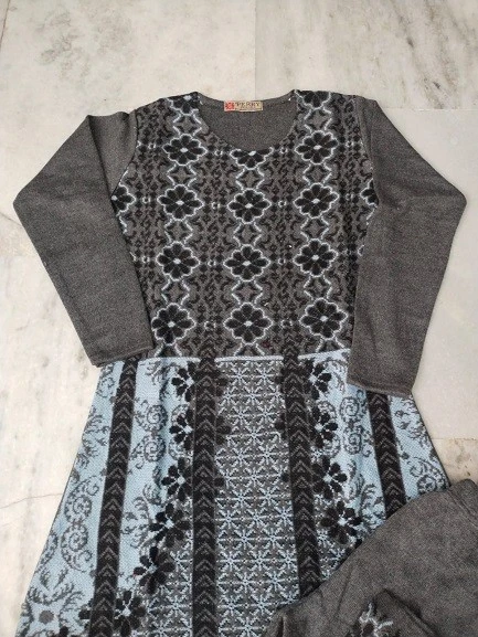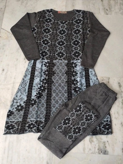 This affordable and stylish women's jaquard woolen frock leggings set is perfect for staying warm and looking your best this winter. The frock is made from high-quality jaquard wool that is soft, warm, and luxurious. The leggings are also made from wool, and they are stretchy and comfortable. This set is perfect for layering, and it can be dressed up or down for any occasion.
