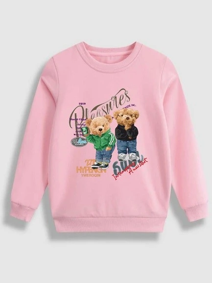 Stylish and Cozy Boys Digital Printed Sweatshirt for Winter BEAR BABY PINK