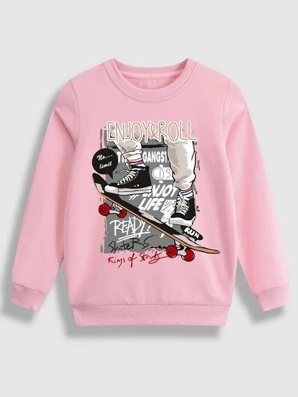 Stylish and Cozy Boys Digital Printed Sweatshirt for Winter Skate Pink