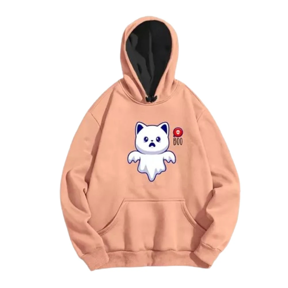 Get ready for Halloween with this INFIRAX horror cat BOO women warm hoodie. This hoodie is made of cotton fabric that is cozy, soft, and comfortable. The solid color background showcases the spooky and cute graphic print on the front, featuring a black cat, a ghost, and the word "BOO". The long sleeves and the hood keep you warm and protected, while the front pocket adds some convenience and style. Whether you wear it with jeans, leggings, or joggers, this hoodie is a perfect choice for any horror cat lover.
