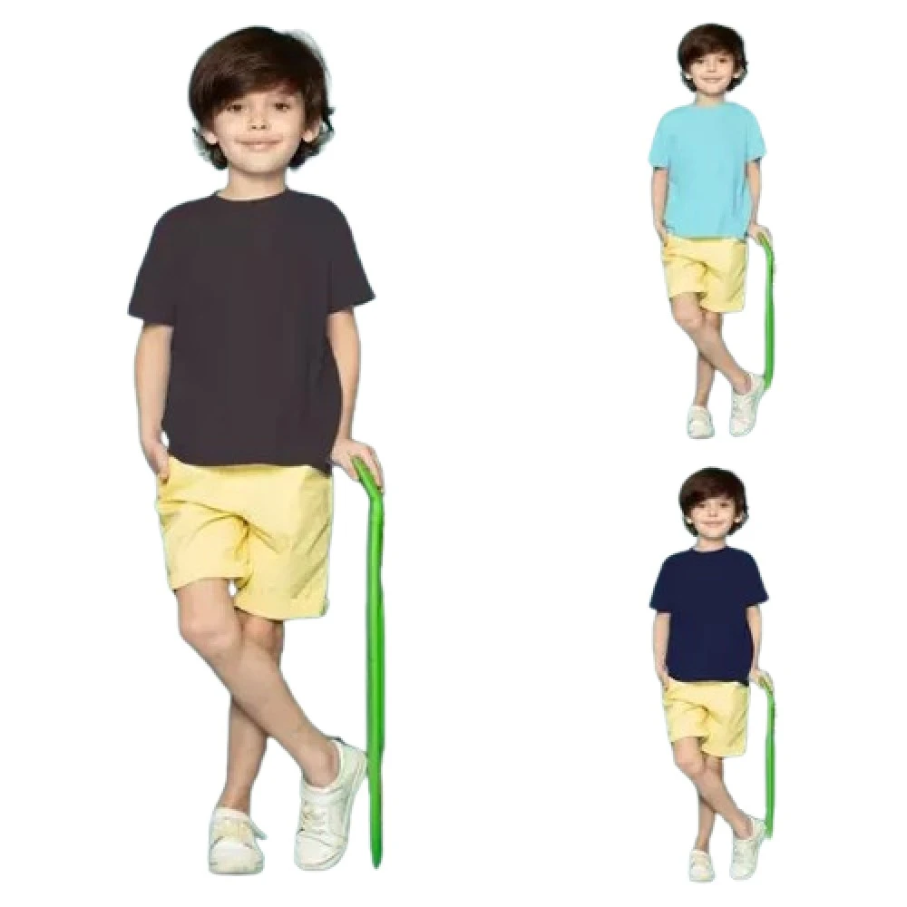 Give your kids a comfortable and stylish wardrobe with the Kids 3 Combo Plain T Shirt. This t shirt is made of cotton, which is soft, breathable, and durable. The short sleeve design and round neck make it easy to wear and layer. The printed pattern features a simple and cute design that will suit any occasion. You can choose from three different colors to mix and match with your kids' outfits. This t shirt comes in various sizes to fit your kids' age and height.