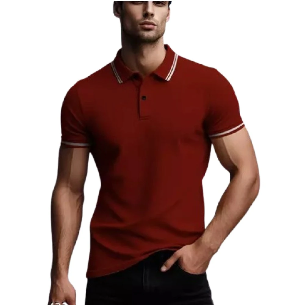 Add some style and flair to your casual look with this Men Bordered Collar Maroon T-Shirt. This T-shirt is made of 100% cotton fabric that is soft, breathable, and comfortable. The T-shirt features a printed design of a geometric pattern on the front, giving it a trendy and modern appeal. The T-shirt has a bordered collar that adds some contrast and elegance to the T-shirt. The T-shirt has short sleeves that are ideal for the summer season. The T-shirt comes in a rich maroon colour that can be easily paired with any bottom wear. Whether you want to wear it with jeans, chinos, or shorts, this T-shirt will make you look smart and stylish. This T-shirt is perfect for casual outings, parties, events, or just hanging out with friends. This T-shirt is also a great gift for your loved ones who love fashion and colours. Order yours today and rock this T-shirt with confidence and charm.