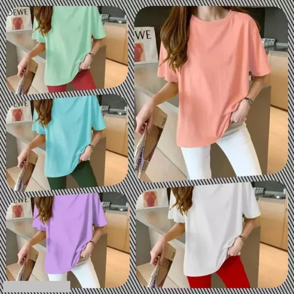 Get more value and variety with this women 5 combo plain plus t-shirt. This t-shirt is made of cotton fabric that is soft, breathable, and comfortable. The solid color design gives you a simple and elegant look, while the short sleeves and the v-neck offer a flattering and feminine look. The t-shirt has a plus size fit and a curved hem that provide a casual and relaxed feel. The combo includes five different colors: black, white, pink, blue, and green. Whether you wear them with jeans, leggings, or skirts, these t-shirts are a versatile and trendy choice for any occasion.