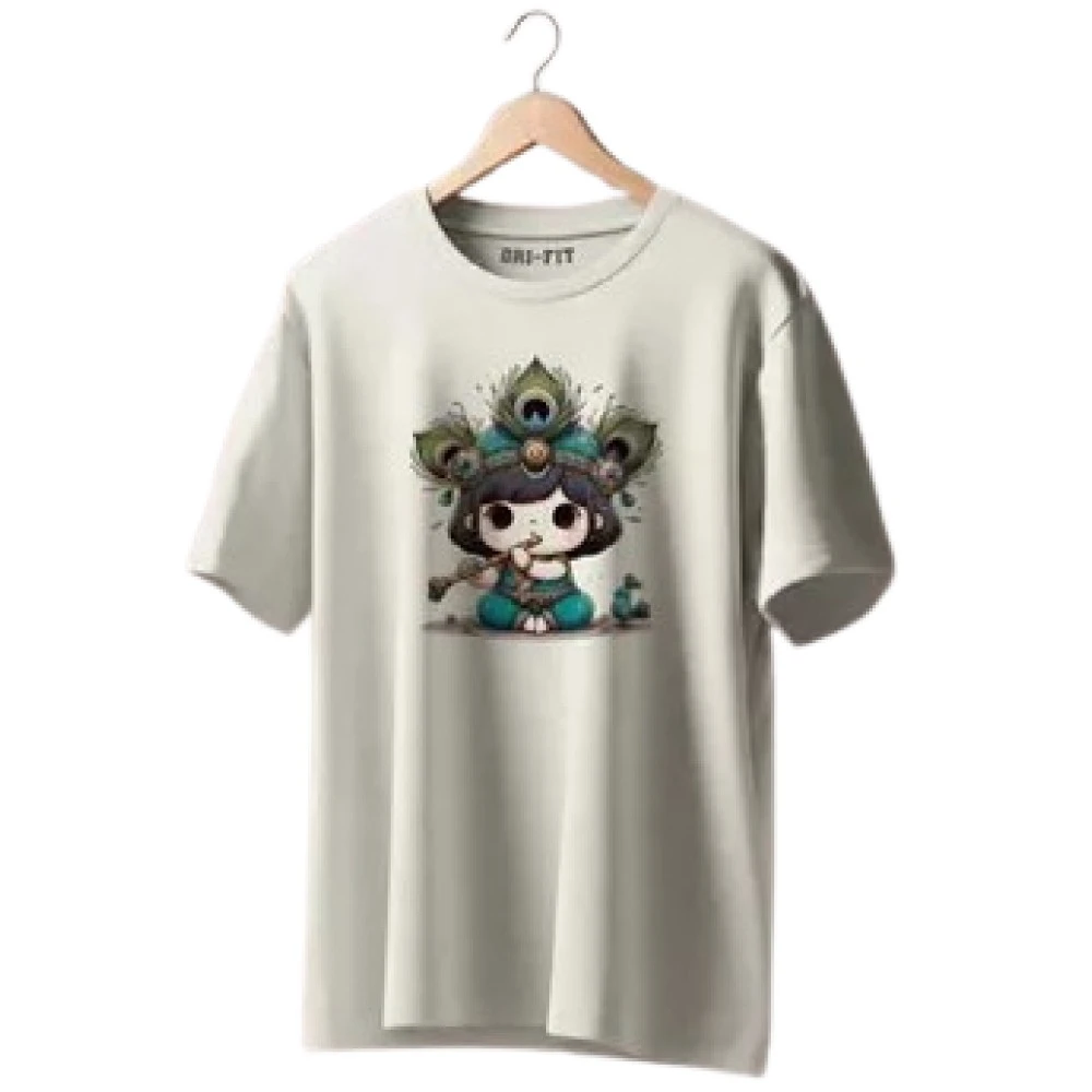 Look divine and graceful with this women Krishna bird polyester t-shirt. This t-shirt is made of polyester fabric that is smooth, lightweight, and durable. The solid color background highlights the beautiful and colorful graphic print on the front, featuring a bird and the name of Krishna, the Hindu god of love and compassion. The short sleeves and the round neck offer a casual and comfortable look, while the regular fit and the straight hem provide a flattering and elegant feel. Whether you wear it with jeans, leggings, or skirts, this t-shirt is a perfect choice for any Krishna devotee.