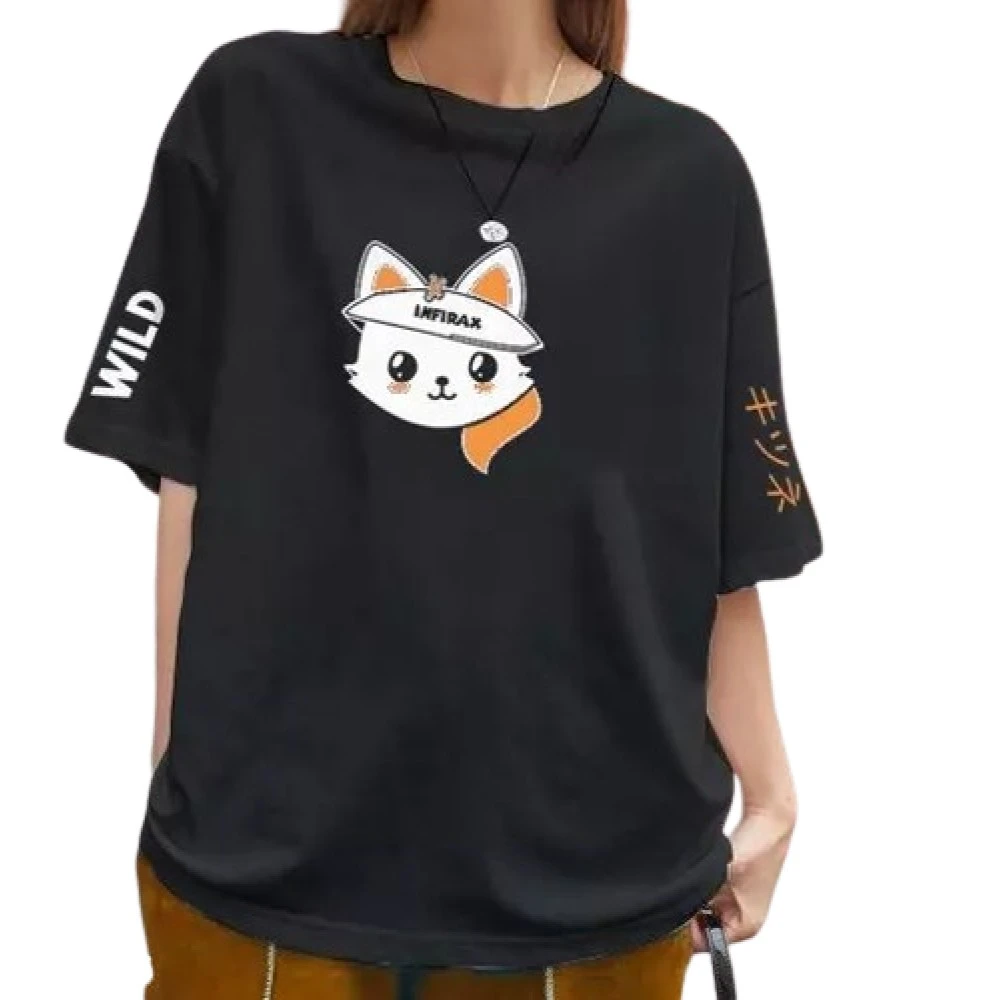 Women Oversize Foxi Black T shirt