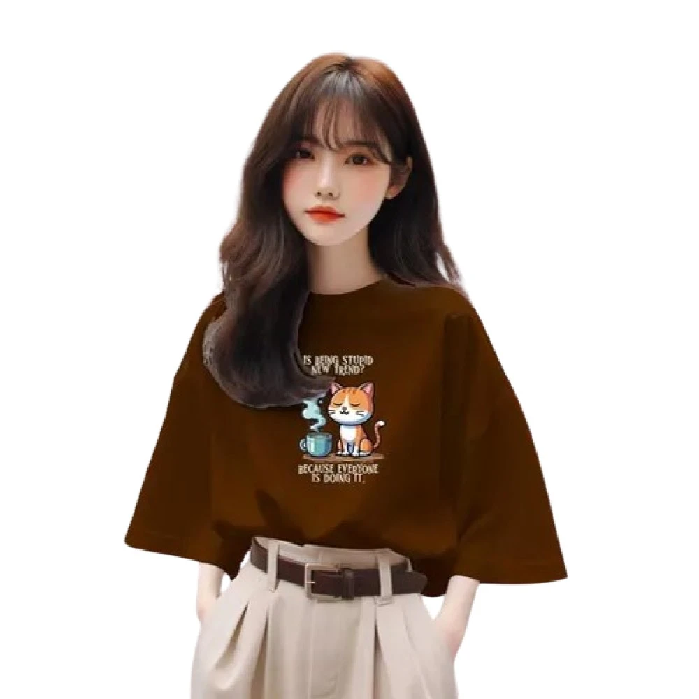 Women oversize Plus Stupid New Trend T shirt is a cotton t-shirt that is witty and trendy. It has short sleeves and a printed pattern that features the words "stupid new trend" in a sarcastic font. The t-shirt has an oversize plus fit that makes it comfortable and fashionable, and comes in a range of colors. Whether you want to mock the latest fads, or just have some fun, this t-shirt is the perfect choice for you.