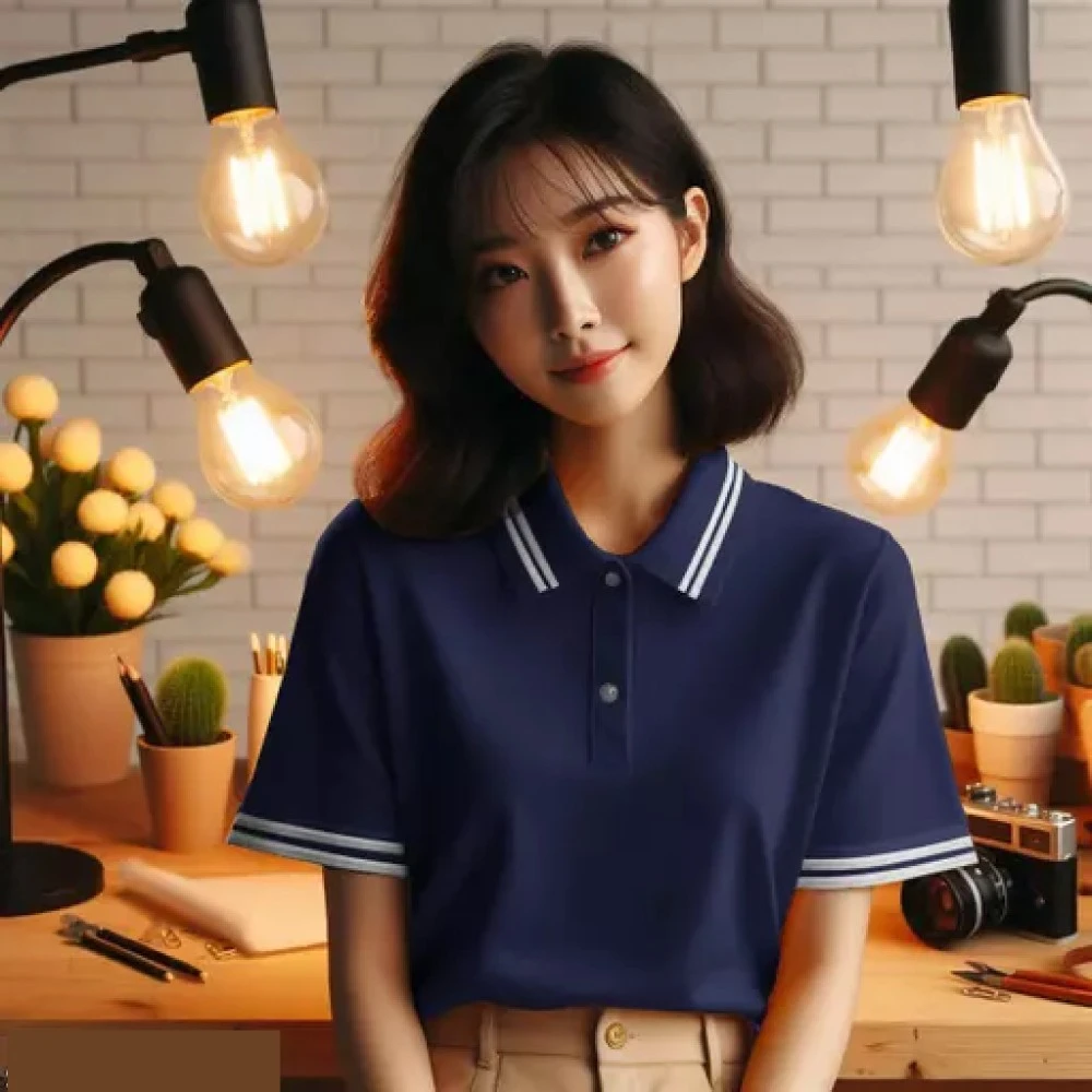 Women Polo Coller Blue T shirt is a cotton t-shirt that combines comfort and style. It has short sleeves that are ideal for warm weather, and a polo collar that adds a touch of sophistication. The t-shirt has a solid pattern that makes it easy to match with any outfit, and comes in a range of colors. Whether you want to dress up or down, this t-shirt is the perfect choice for you.