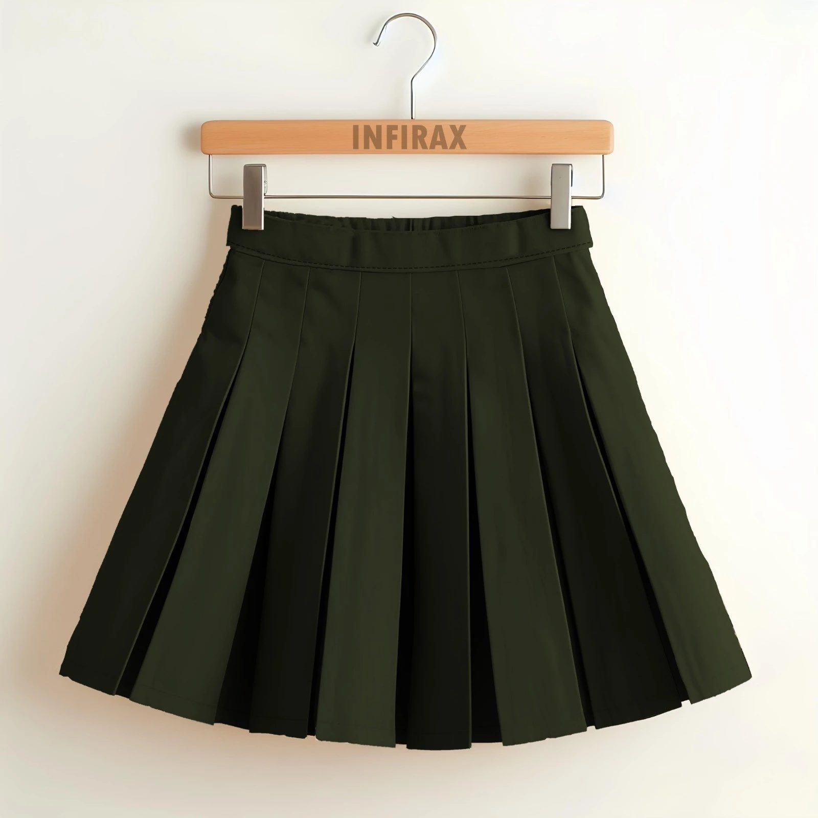 This Women Korean Short Pleated Tennis Green Skirt is a stylish and practical choice for any occasion. This skirt is made of cotton fabric that is soft, breathable, and comfortable. The skirt has a solid colour that can be easily matched with any top wear. The skirt features pleated details that add some flair and movement to the skirt.  The skirt has a zip fly and button closure that ensure a secure and comfortable fit. The skirt comes in a short length that is perfect for the summer season. Whether you want to wear it with a T-shirt, a blouse, or a sweater, this skirt will make you look fashionable and chic.