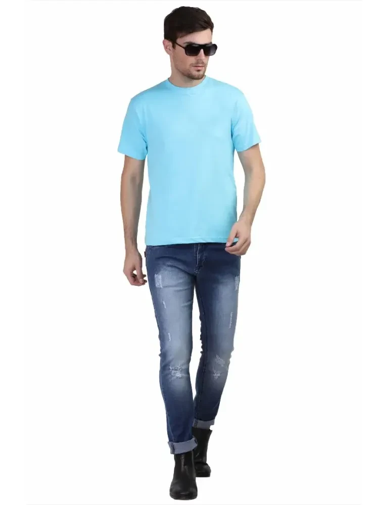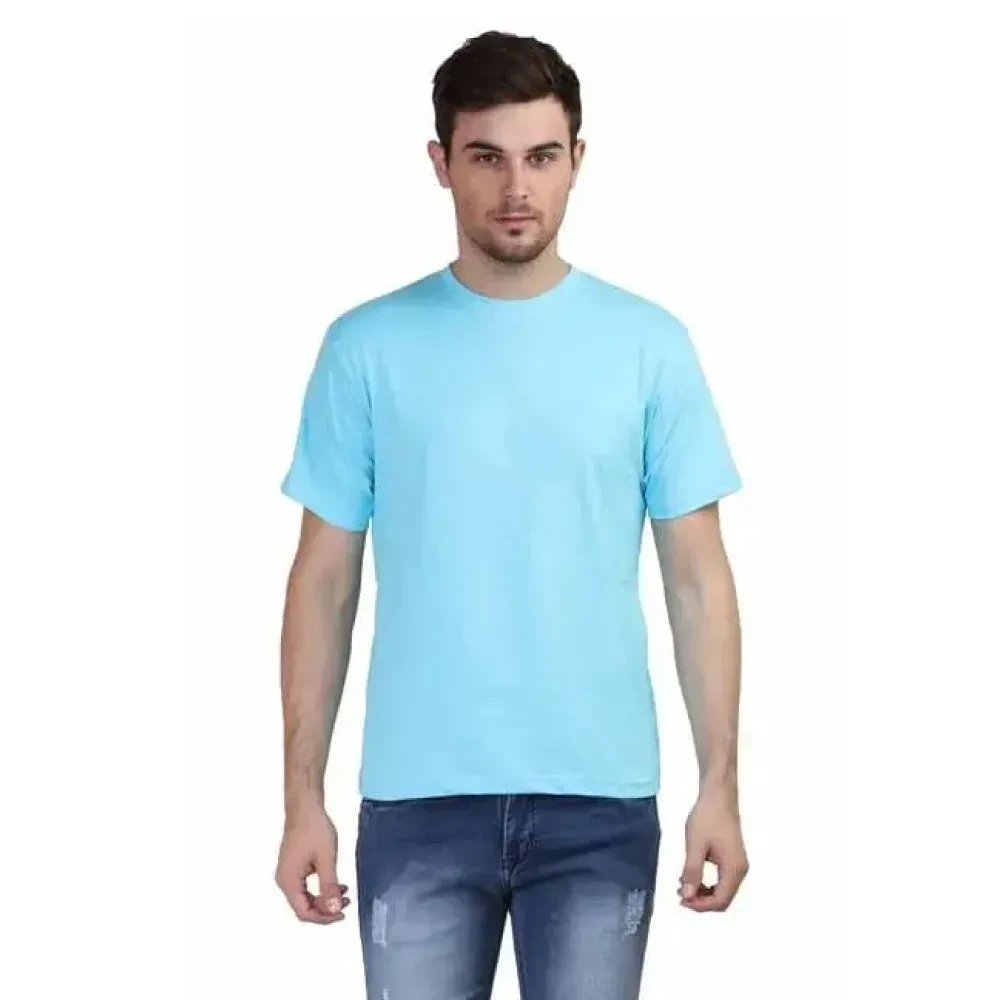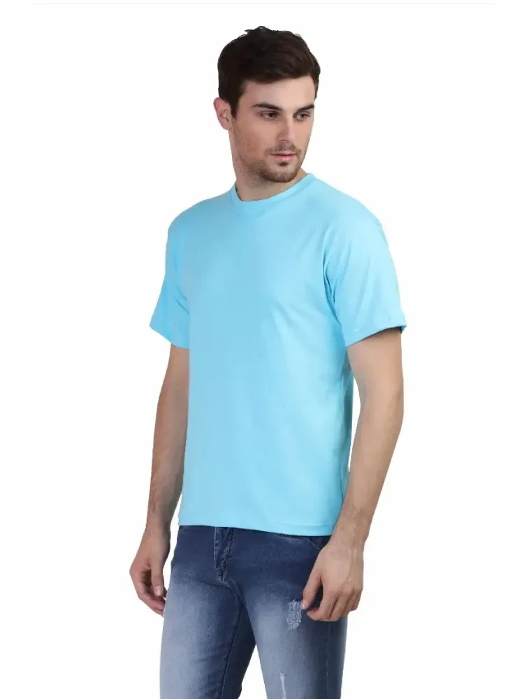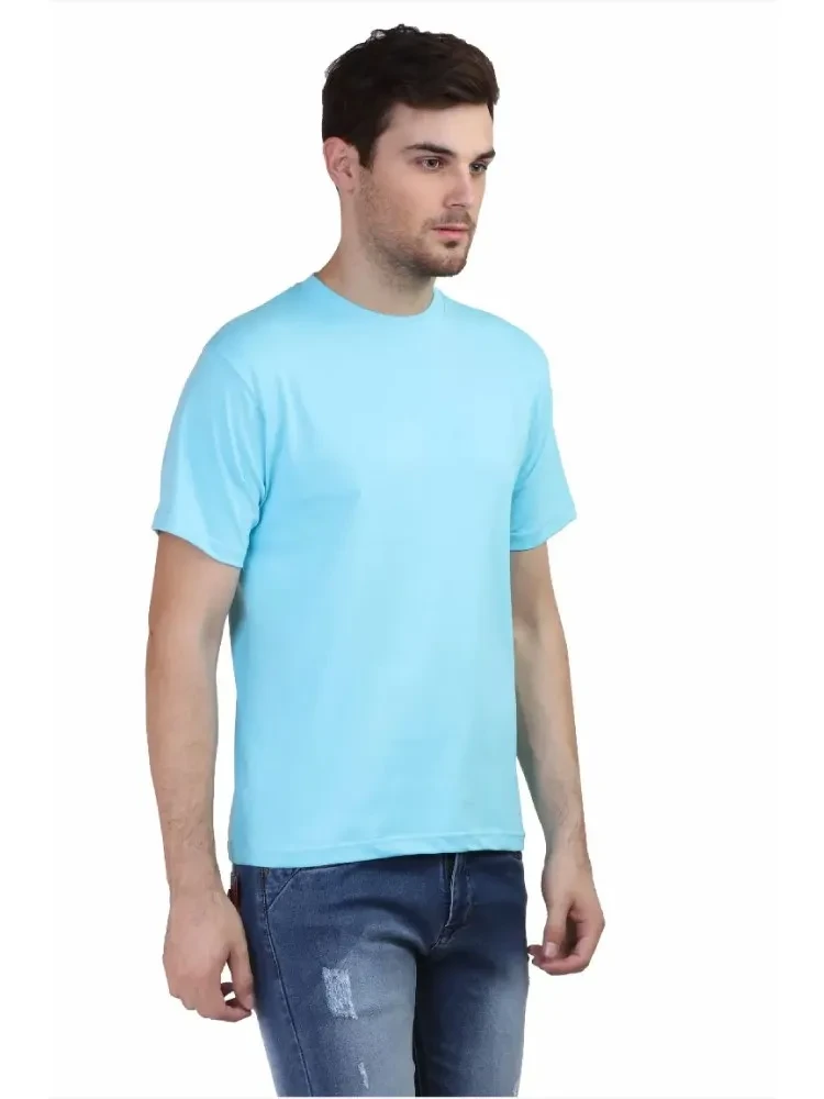 Tag: tshirt half sleeve cotton sleeve men wear clothes clothing blue tee men plain t shirt sky blue