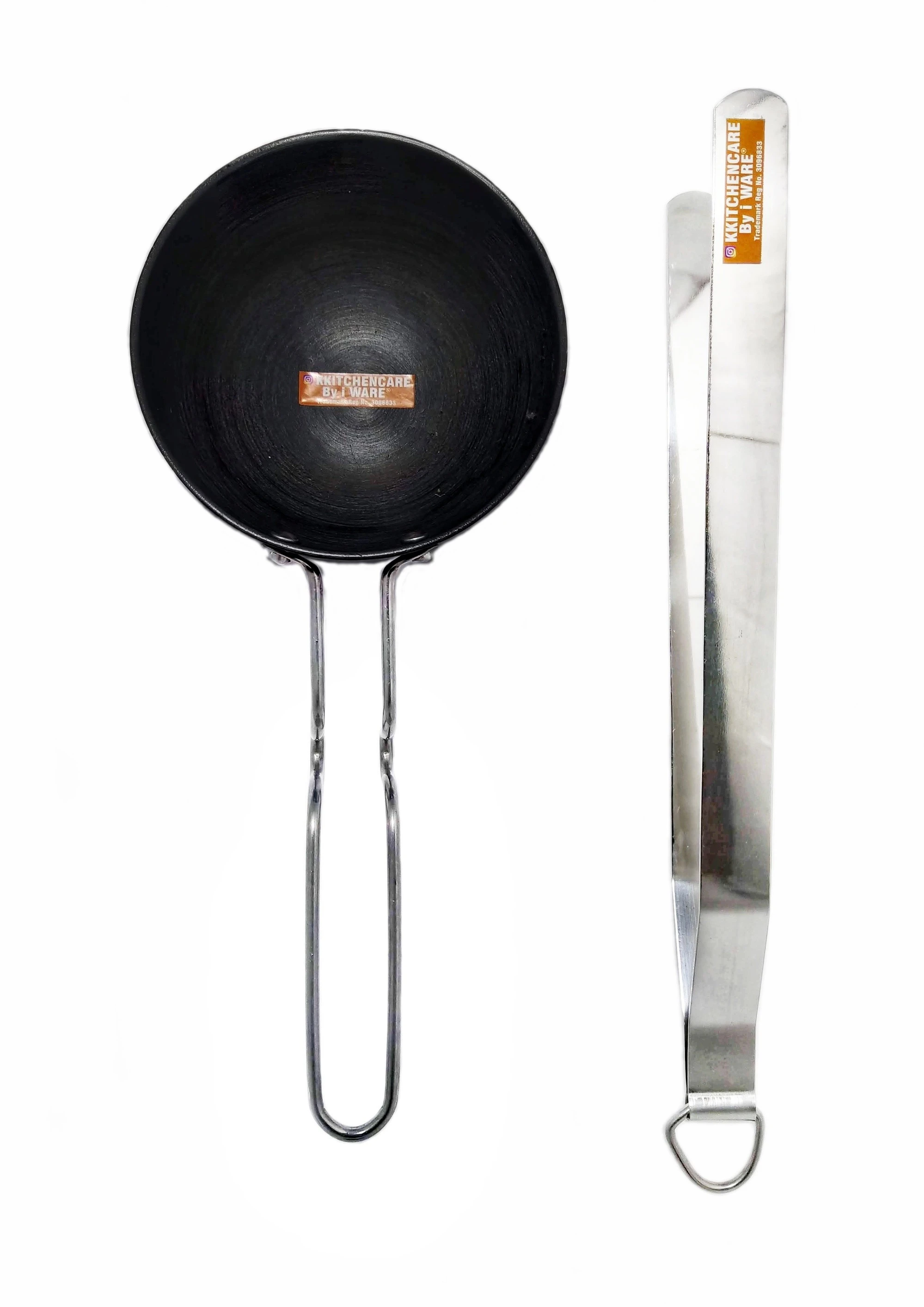 i WARE KkitchenCare Hard Anodised Tadka Pan and Roti Tong - Chimta - Chipya Set of 2