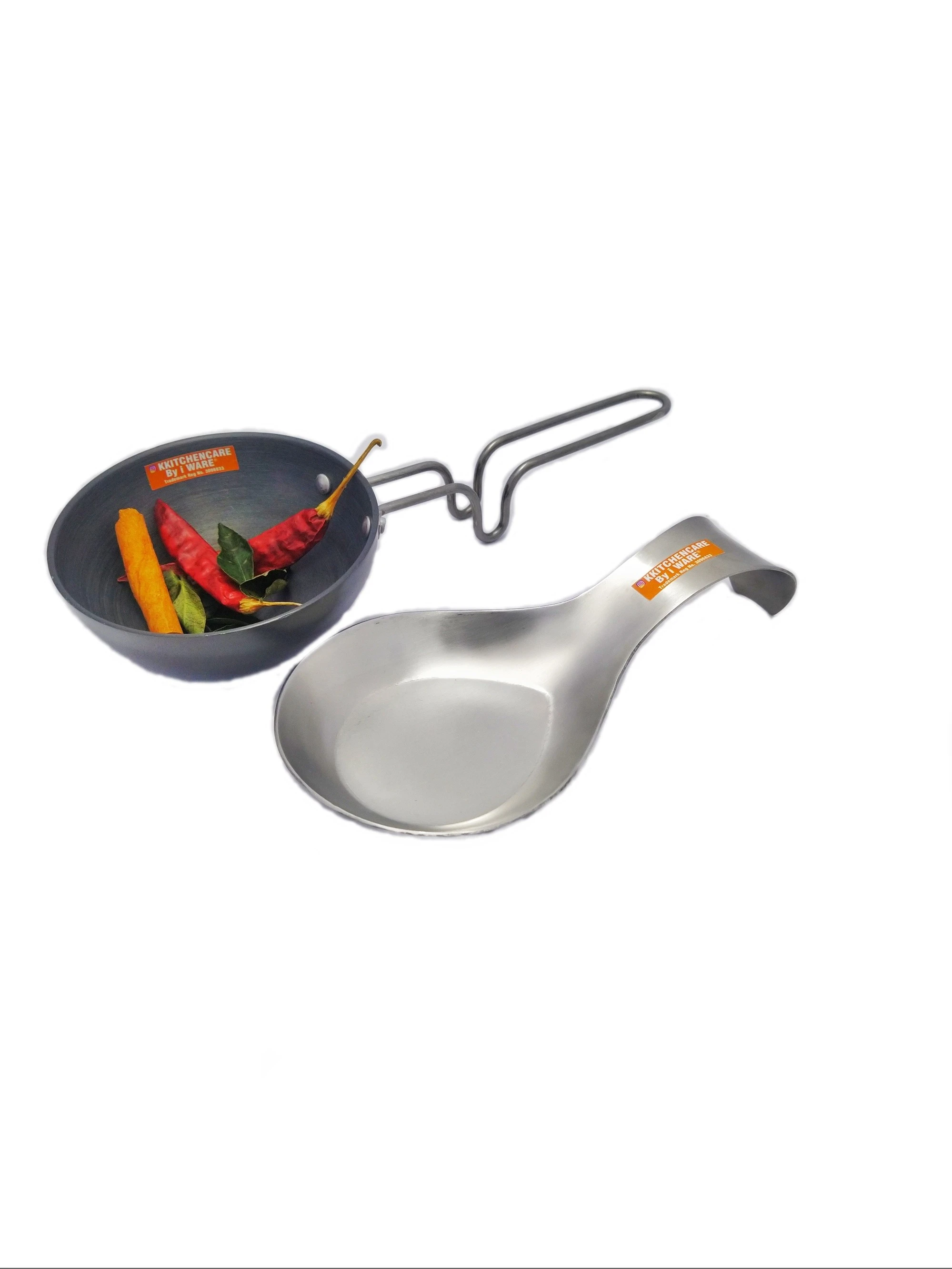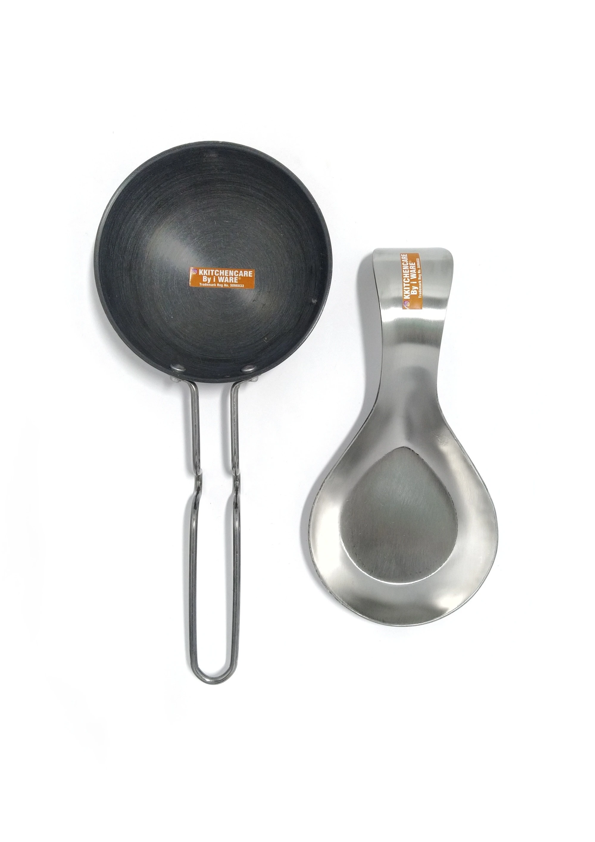 i WARE KkitchenCare Hard Anodized Tadka Pan and Stainless Steel Spoon Rest Holder - Silver