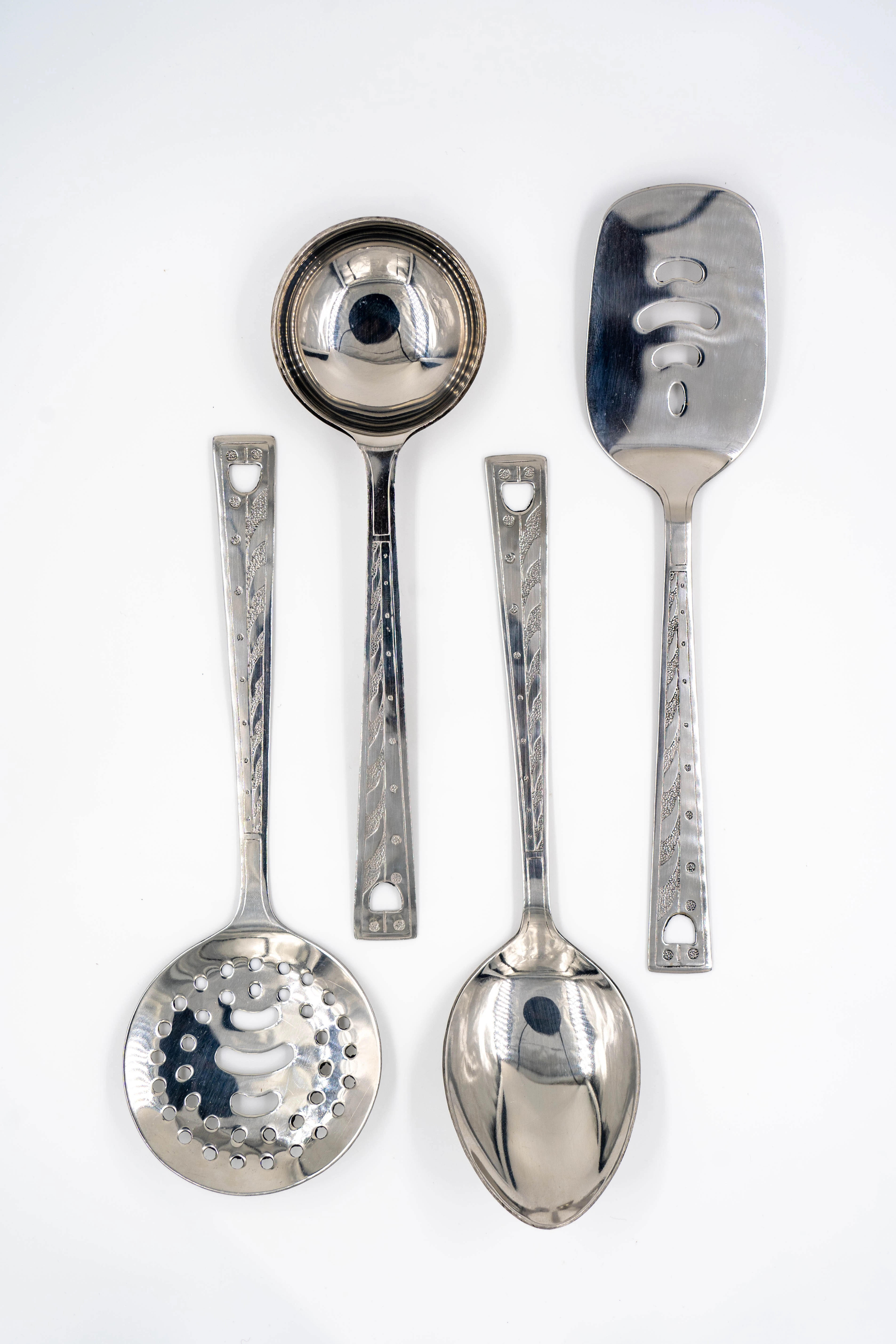 • 4 pieces of Cooking / Serving spoon is a complete package which includes a ladle, slotted turner, skimmer and 1 solid spoon