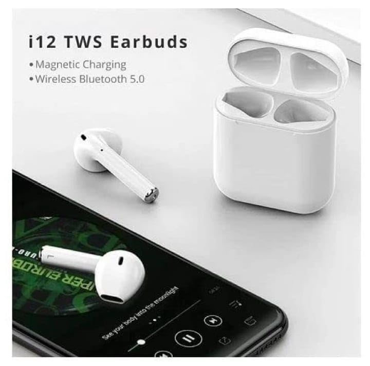 Experience true wireless freedom with the i12 TWS Earphones! These sleek and compact earbuds deliver clear audio and seamless connectivity, making them perfect for your daily commute, workouts, or just enjoying your favorite music at home.True Wireless Stereo (TWS): Enjoy an untethered listening experience with independent left and right earbuds.Auto Power On & Auto Pairing: Simply open the charging case lid, and your earphones will automatically power on and connect to your device (after initial pairing).Touch Controls: Easily manage your music and calls with intuitive touch-sensitive controls.Siri Compatibility: Access your voice assistant with a simple touch (specific touch command may vary).Compact & Portable: The stylish charging case keeps your earphones safe and charged on the go.Quick Charging: Get back to your music faster with a charging time of approximately 40 minutes for the earphones.Decent Battery Life: Enjoy 2-3 hours of talk time on a single charge.Universal Compatibility: Connects to a wide range of devices with Bluetooth 5.3.