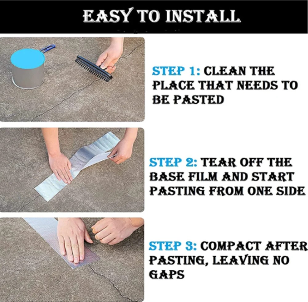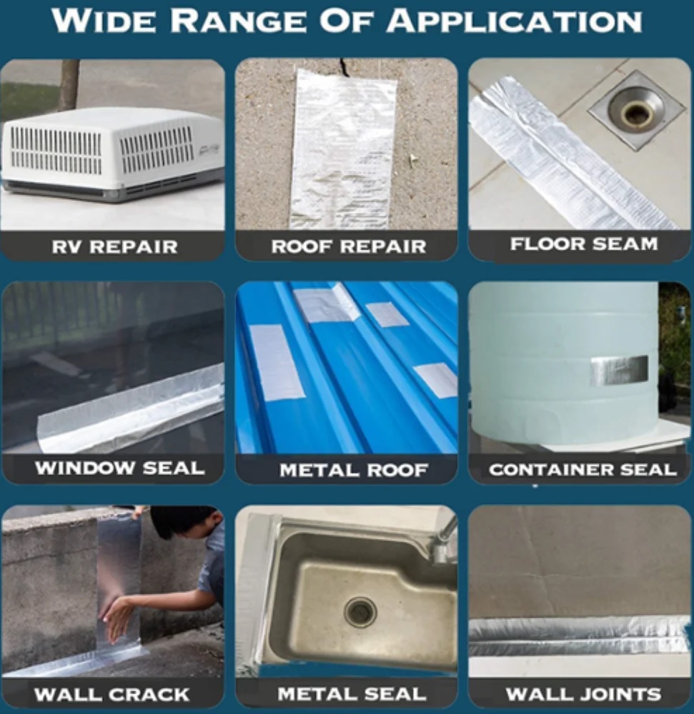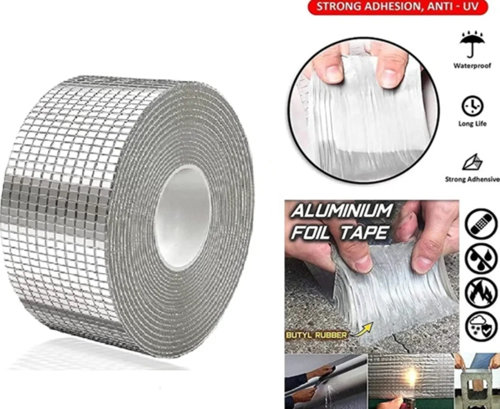Durable & Permanent Use Wear-resistant layers, non-slip & endurable. It can maintain flexibility & adhesion, withstand a certain degree of displacement, and deformation. Elongation rate of 1000%, ageing resistance for many years. Excellent Waterproof Aluminium Tape can be used for repairing, sealing, Fixed wire and cable, hose, pipe etc. It also provides waterproof protection. Excellent moisture and weather resistant. Strong Adhesive Tape :The aluminium foil adhesive tape adopts high polymer synthesis butyl glue, which owns strong adhesive ability. The aluminum foil adhesive tape can stick on all kinds of surface, including glass, cement ground, tile, wood in water and so on. Easy To Use Before attaching the tape, keep the target surface clean, dry and oil-free. Peel off the released film and then apply this butyl sealant tape to the surface. Wide Application : Suitable for roof leaks, window sealing, RV awning, gutters, down spouts, boats, personal watercrafts, canoes, outdoor equipment, mobile homes, RVS & campers, PVC & plumbing pipes, sprinkler systems, doors, walls, seams, vents, air ducts, HVAC systems, DIY projects, etc.
