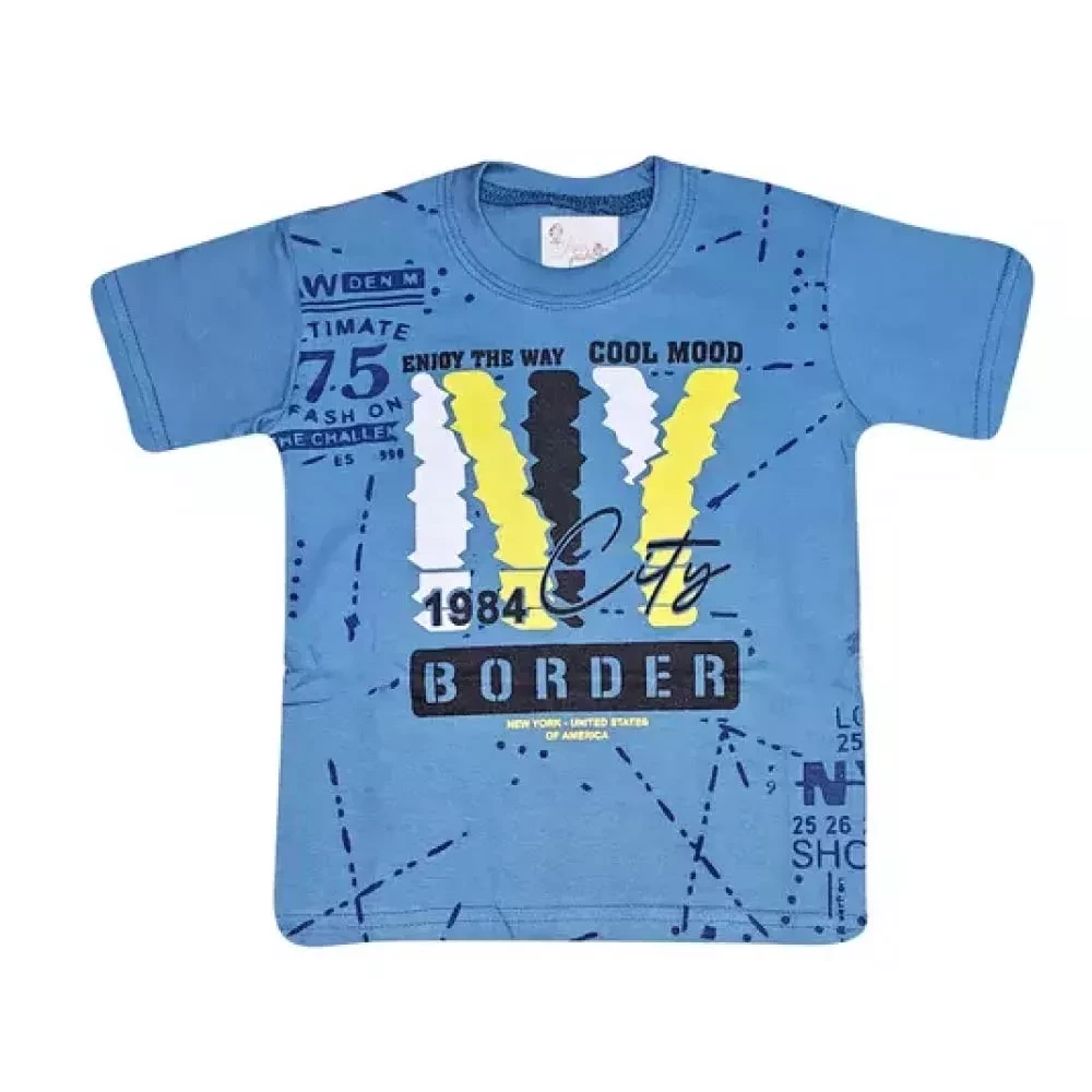 The t-shirt features a classic short-sleeve design, perfect for warmer weather or layering under jackets and sweaters during cooler seasons. Adorned with a vibrant printed pattern, this top adds a playful touch to his casual look, making it a fun and stylish choice for everyday wear.