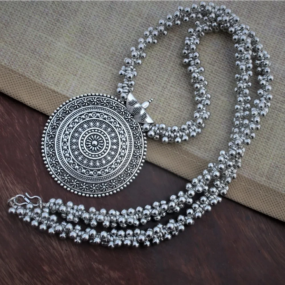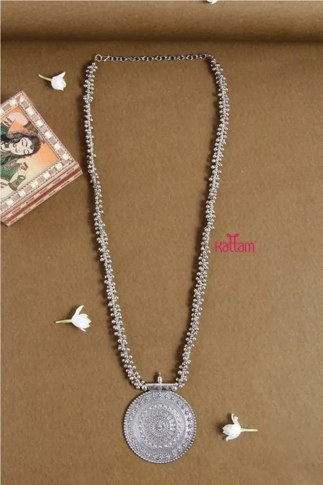 Elevate your accessory collection with the exquisite German Silver Long Chain. Crafted from high-quality brass and plated with oxidised silver, this long chain exudes a timeless elegance that complements any outfit. The intricate design and lustrous silver hue add a touch of sophistication, making it perfect for both special occasions and everyday wear.