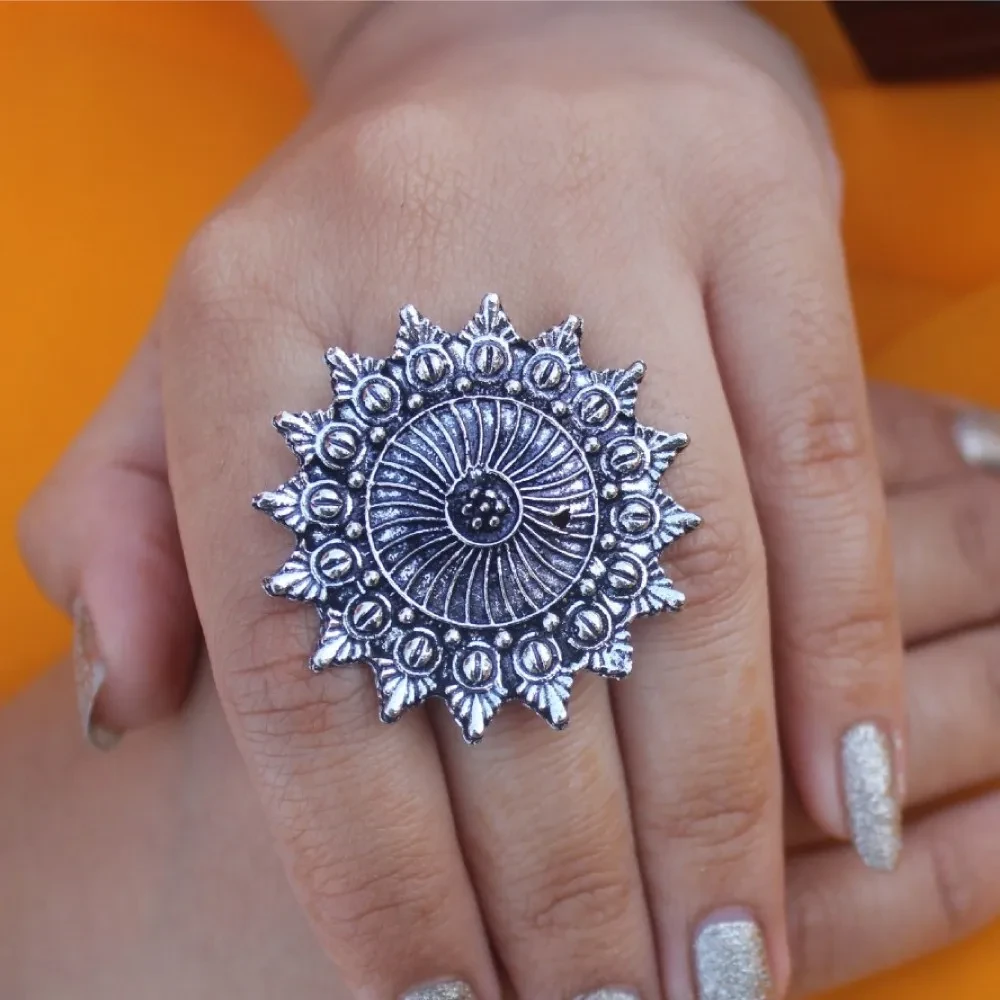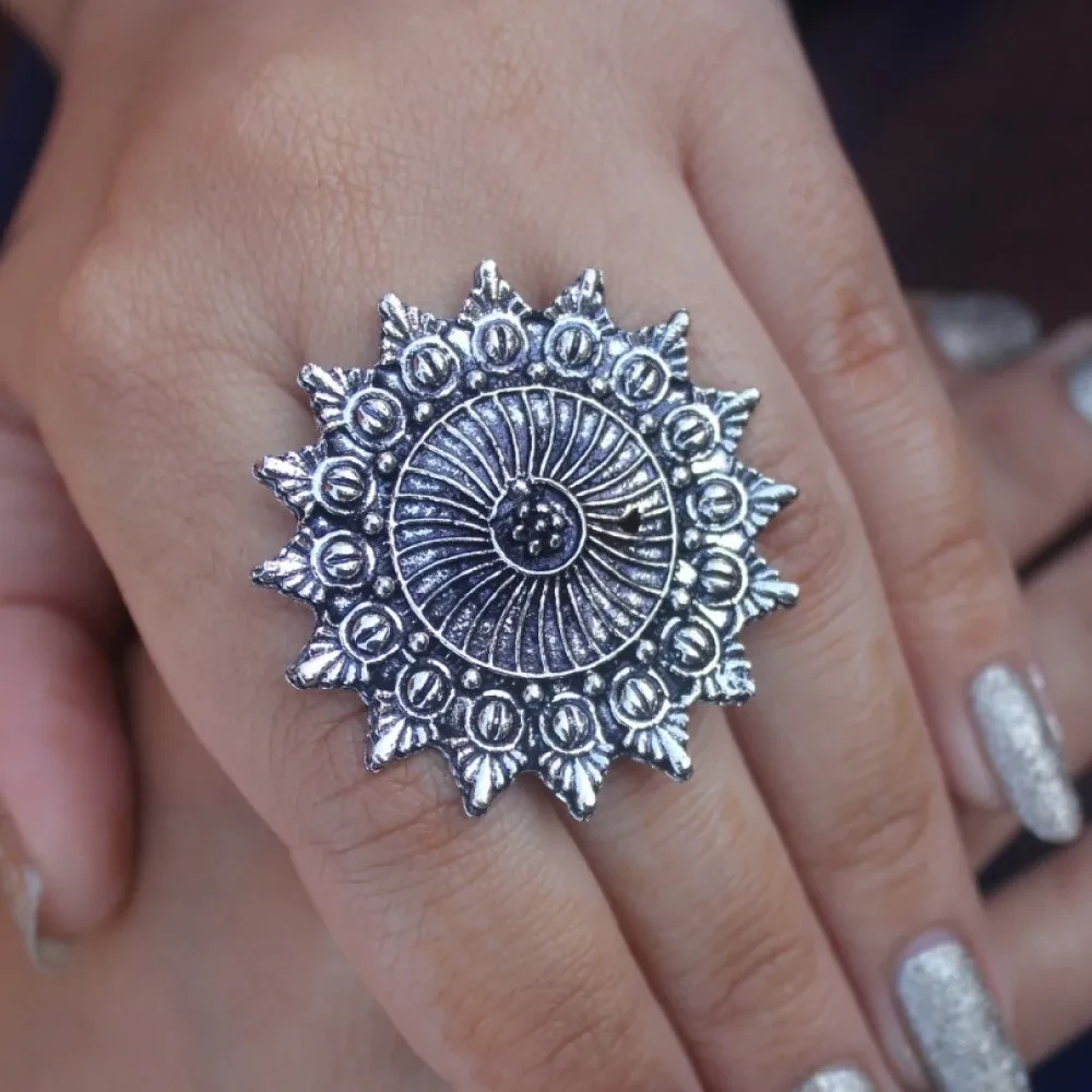 Latest Oxidised Silver German Ring