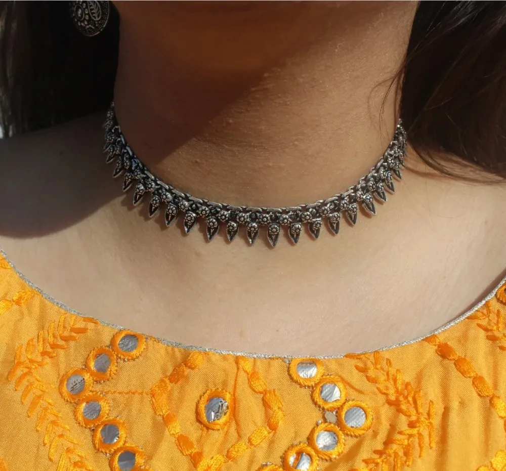 Elevate your elegance with this Light Weight Brass Necklace for Women. Crafted from high-quality brass and plated with oxidised silver, this necklace combines durability with a refined aesthetic. Its lightweight design ensures comfort, making it perfect for all-day wear. The silver hue adds a touch of sophistication, complementing any outfit with effortless grace. Ideal for both special occasions and everyday wear, this necklace is a versatile addition to your jewelry collection. Embrace timeless style and understated elegance with this exquisite brass necklace.