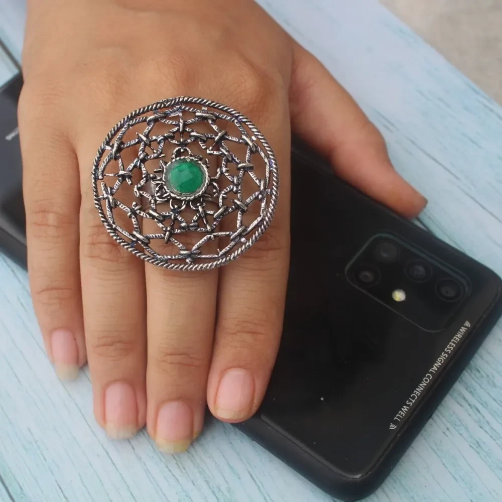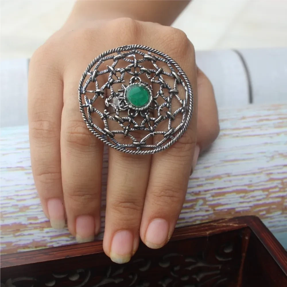 Tag: imitation jewellery jewellery women jewellery stone imitation green ring silver oxidised