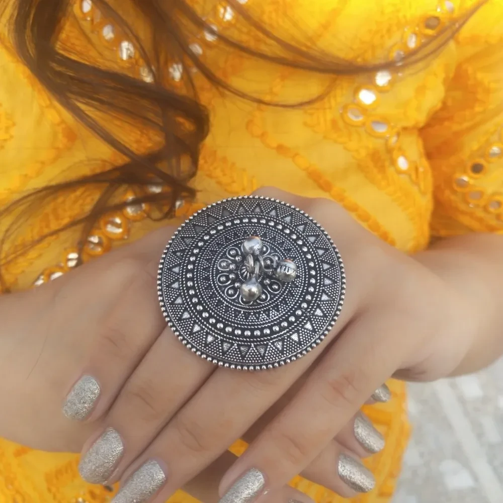 Add a touch of tribal elegance to your accessory collection with this Oxidised Silver Tribal Style Ring. Crafted from high-quality brass, this ring features a beautiful oxidised silver finish that highlights its intricate tribal patterns. Perfect for any occasion, this ring is designed to make a statement, whether you're dressing up for a night out or adding a unique flair to your everyday look. Embrace the artistry and cultural richness embodied in this exquisite piece of jewelry.