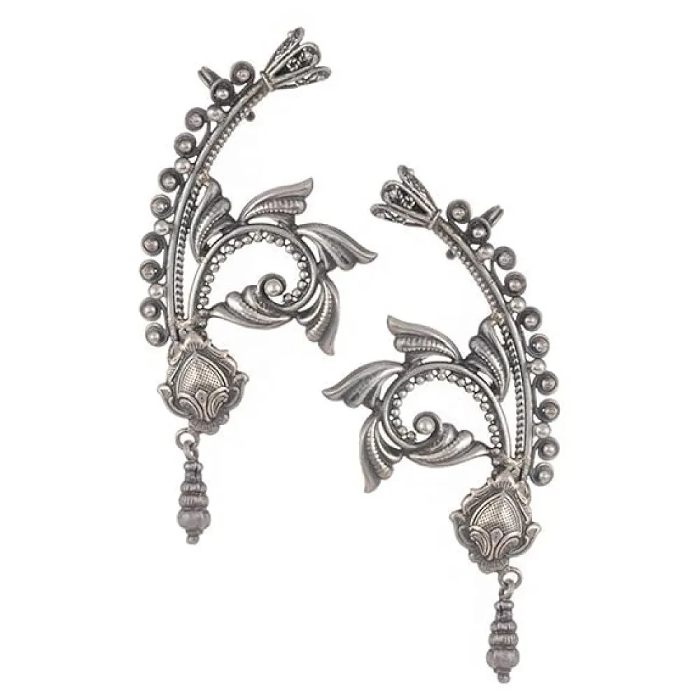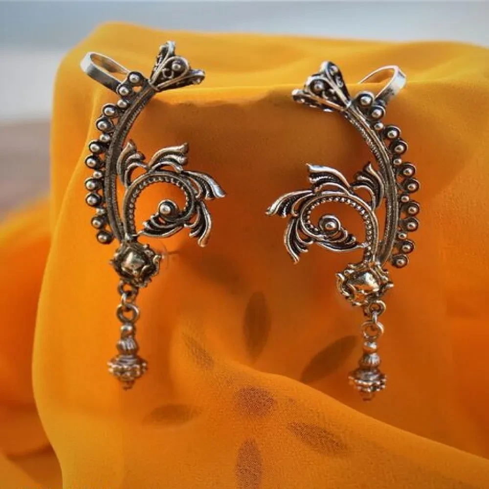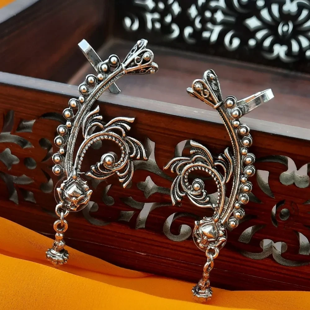 Elevate your style with these exquisite Silver Ear Cuffs Earrings for Women. Crafted from high-quality brass and plated with oxidised silver, these earrings offer a stunning and unique design that effortlessly enhances any outfit. Weighing 200 grams, they provide a substantial feel while remaining comfortable for all-day wear.