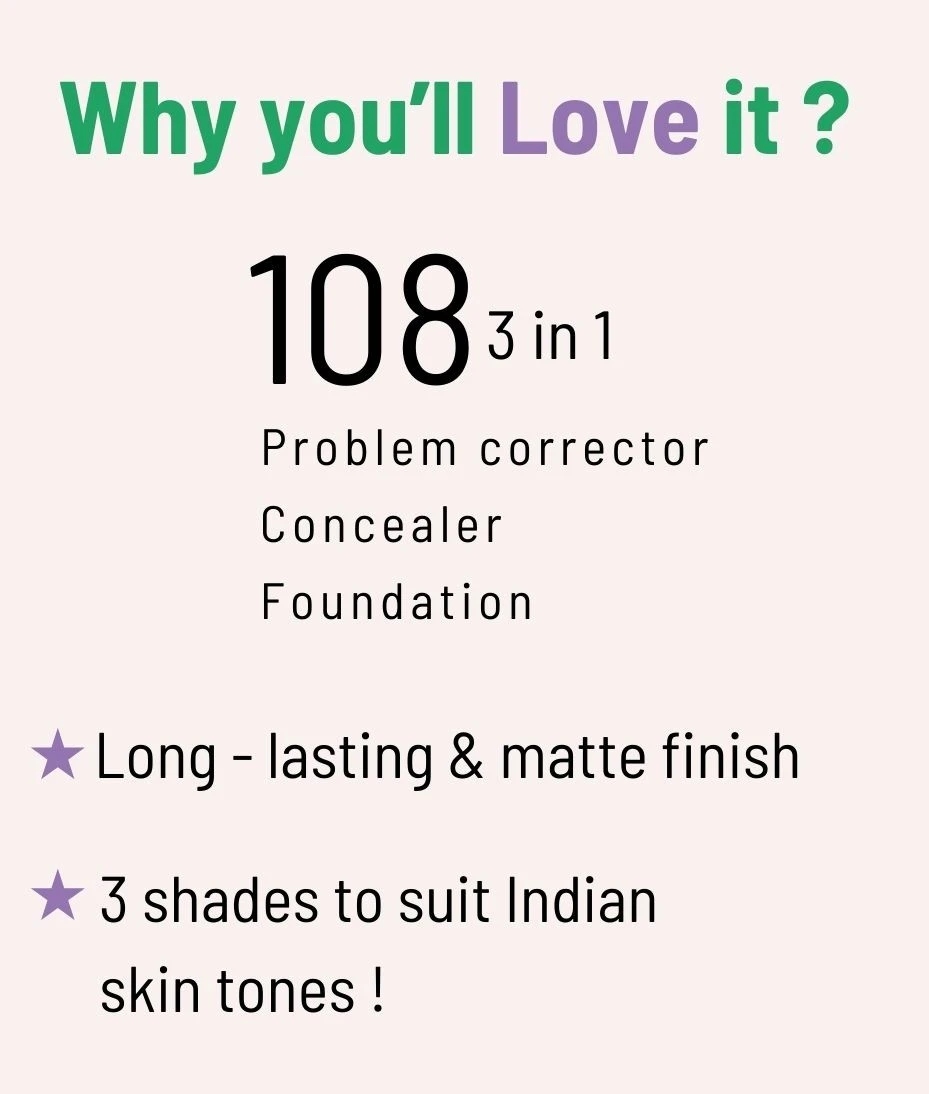 Experience the magic of instant radiance as our 3 in 1 #108 works its wonders to perfect your skin and elevate your look. Say goodbye to dullness and hello to a fresh, luminous complexion with this all-in-one beauty essential.