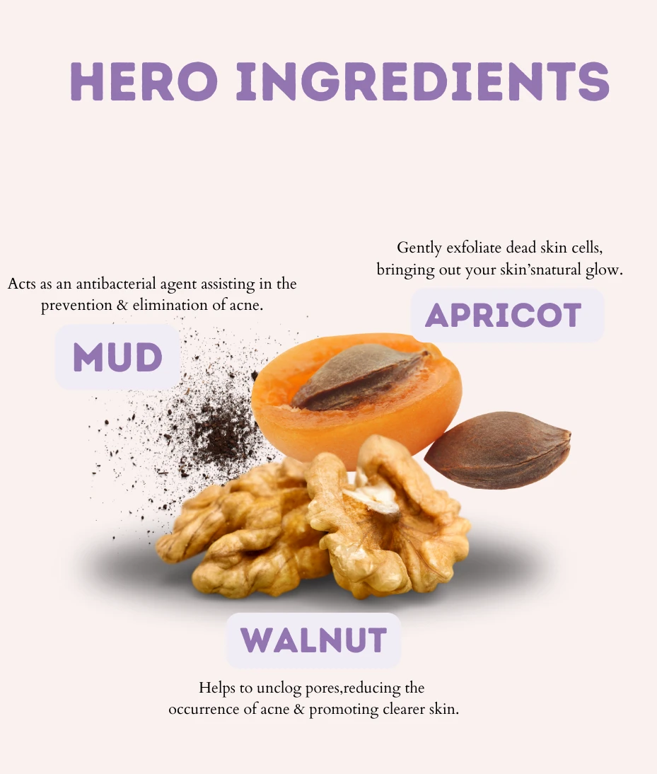 Balances skin’s oil production: The mud in the Face Wash helps regulate the skin’s oil production, preventing excessive oiliness while maintaining necessary hydration for a balanced complexion