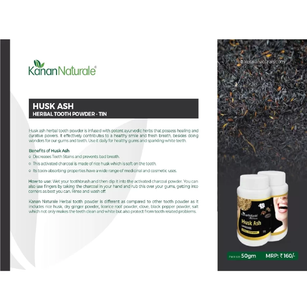 Husk ash herbal tooth powder is infused with potent ayurvedic herbs that possess healing and curative powers. It effectively contributes to a healthy smile and fresh breath, besides doing wonders for our gums and teeth. Decreases Teeth Stains.This activated charcoal is made of rice husk which is soft on the tooth. Helps to prevent bad breath.