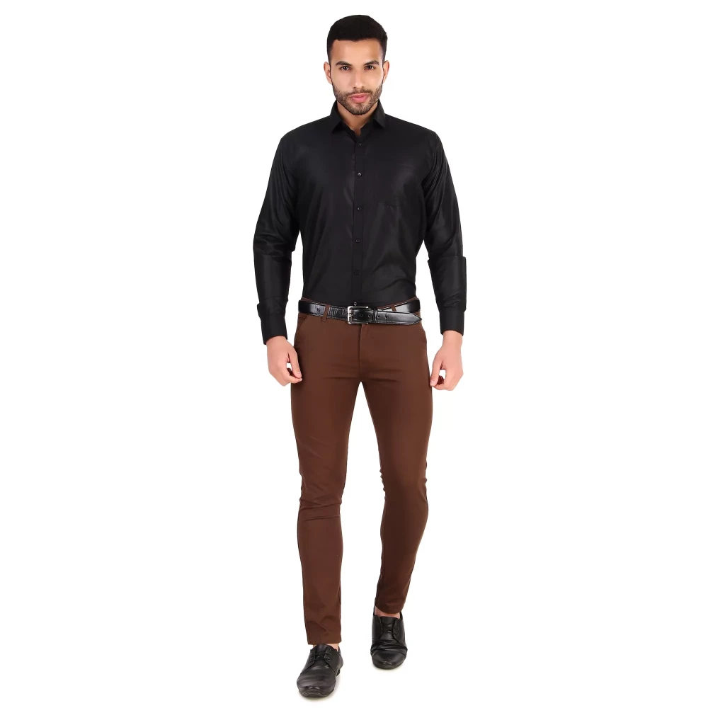 This Casual Solid shirt has a Slim fit, Spread collar, full button, Full Sleeves, and a curved hemline Size.