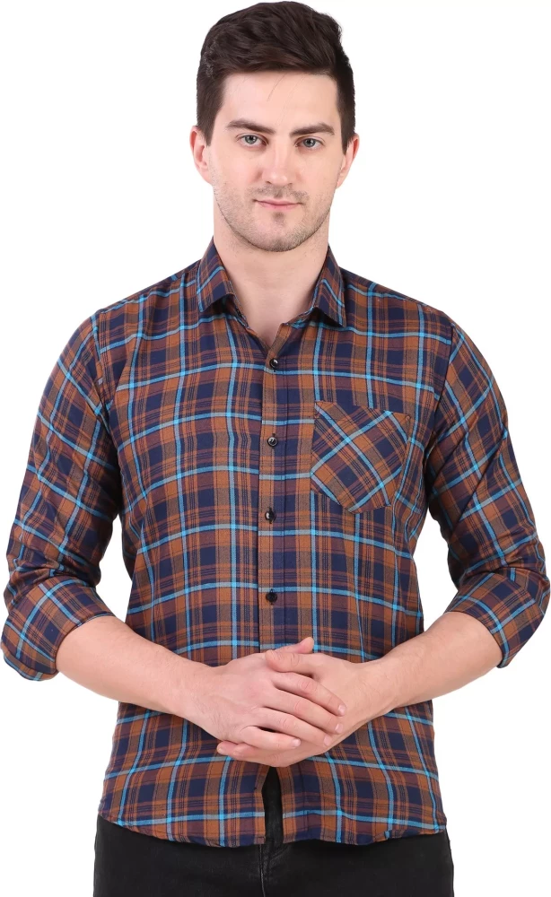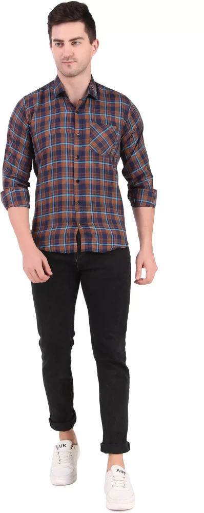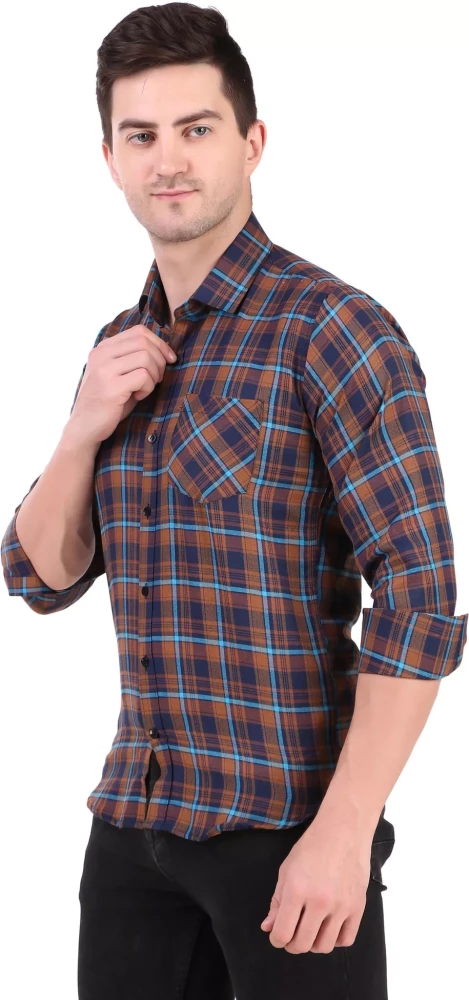 Tag: shirt cotton men wear clothes clothing brown men checkered casual shirt